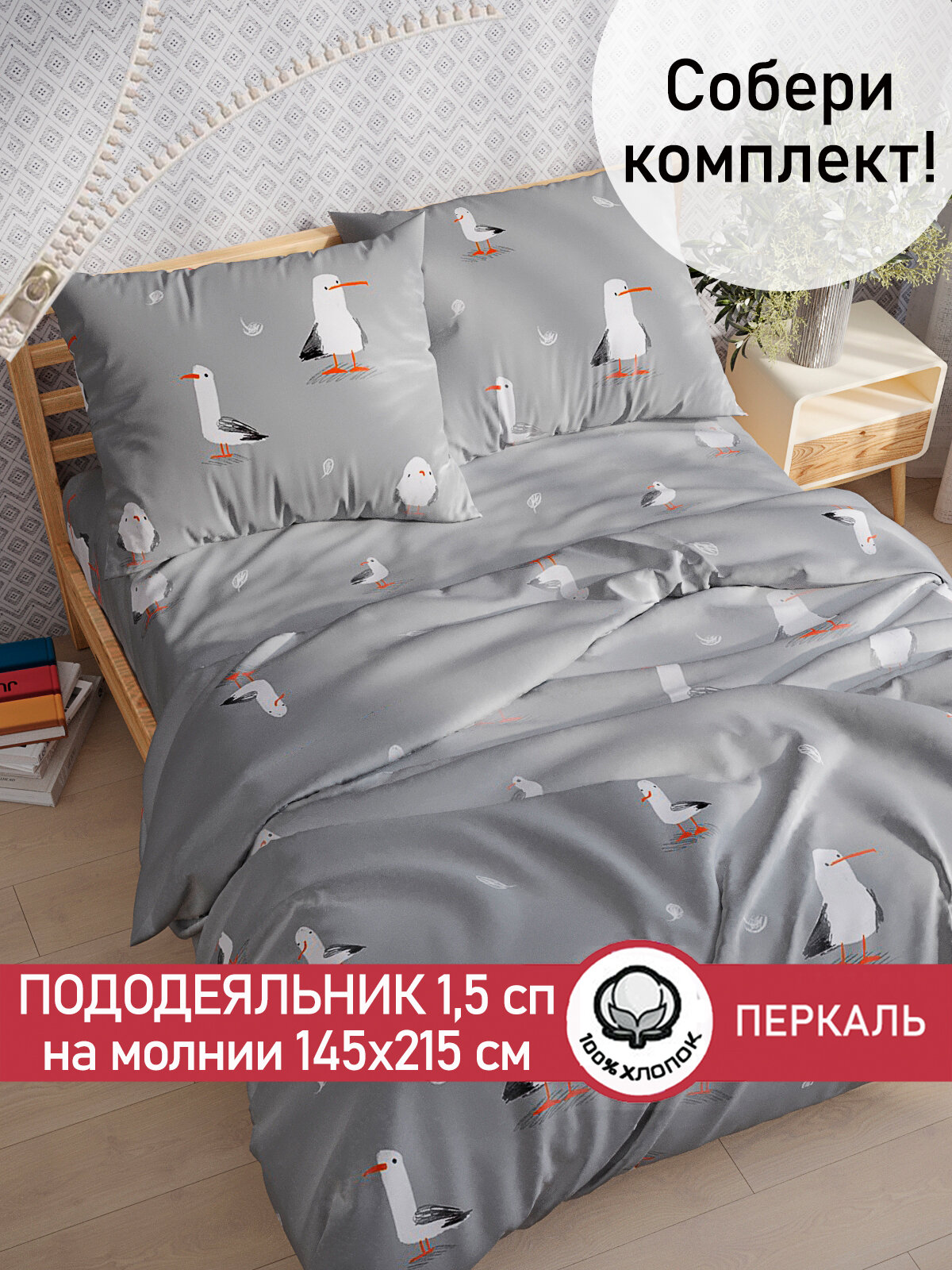 Отзывы на Пододеяльник 145х215 см на молнии, 1,5 спальный, Сказка "Морская птица", ткань перкаль, 100% хлопок