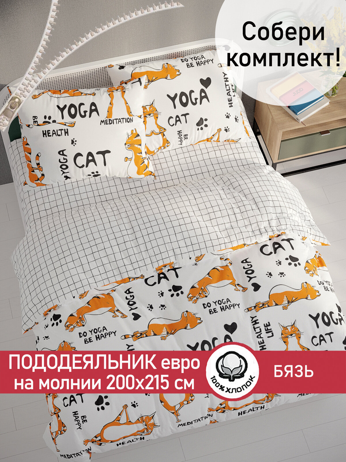 Пододеяльник 200х215 см на молнии, евро, Сказка "Yogacat/Торино", ткань бязь, 100% хлопок информация: