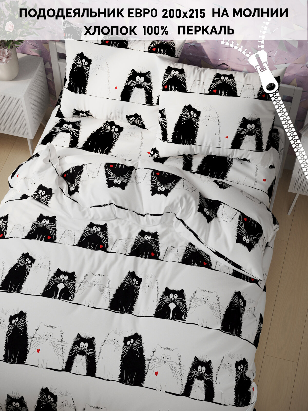 Отзывы на Пододеяльник Кот Коттон "Коты" евро 200х215 см перкаль 100% хлопок
