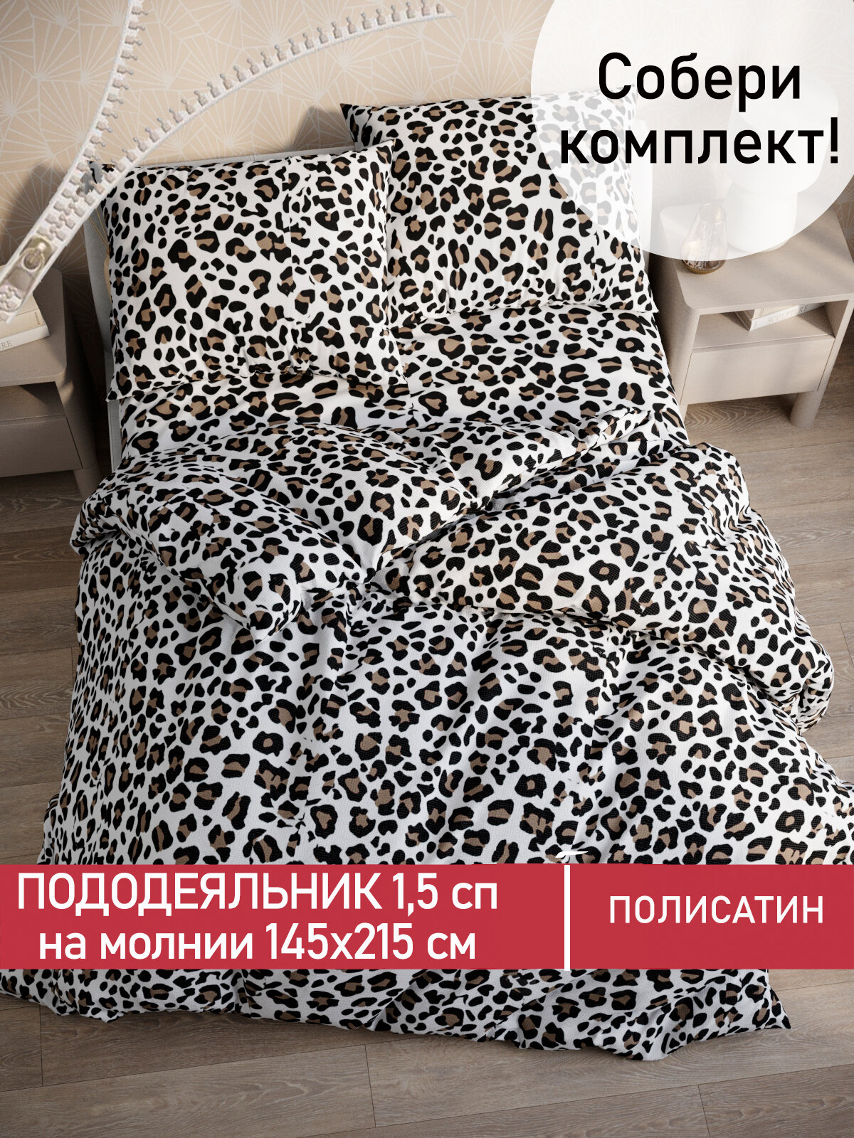 10 цен на Пододеяльник 145х215 см на молнии, 1,5-спальный, Мечта "Panther", ткань полисатин