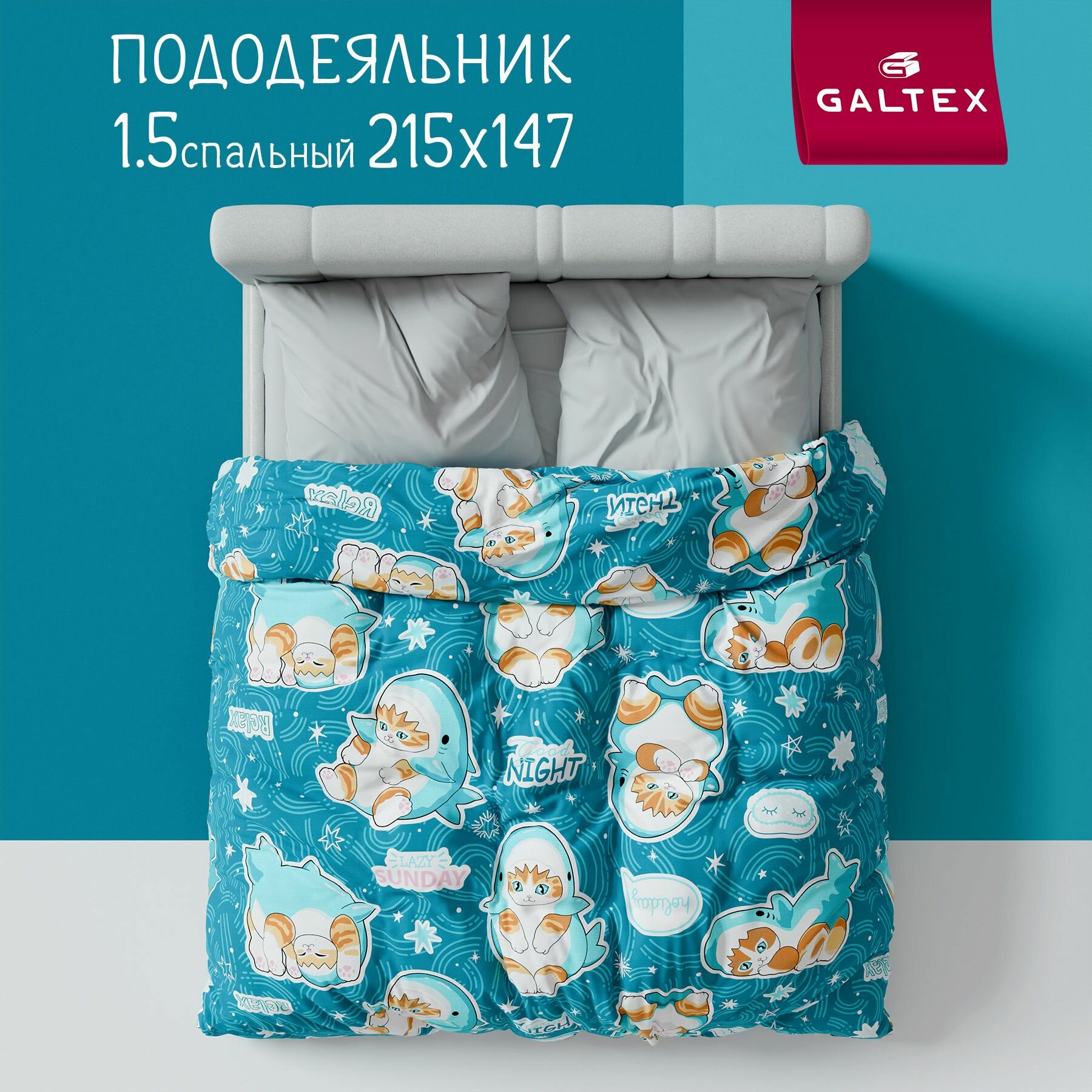 Пододеяльник 1 5 спальный 150х200 см Galtex Кот Акула темно-синий бязь 100% хлопок информация: