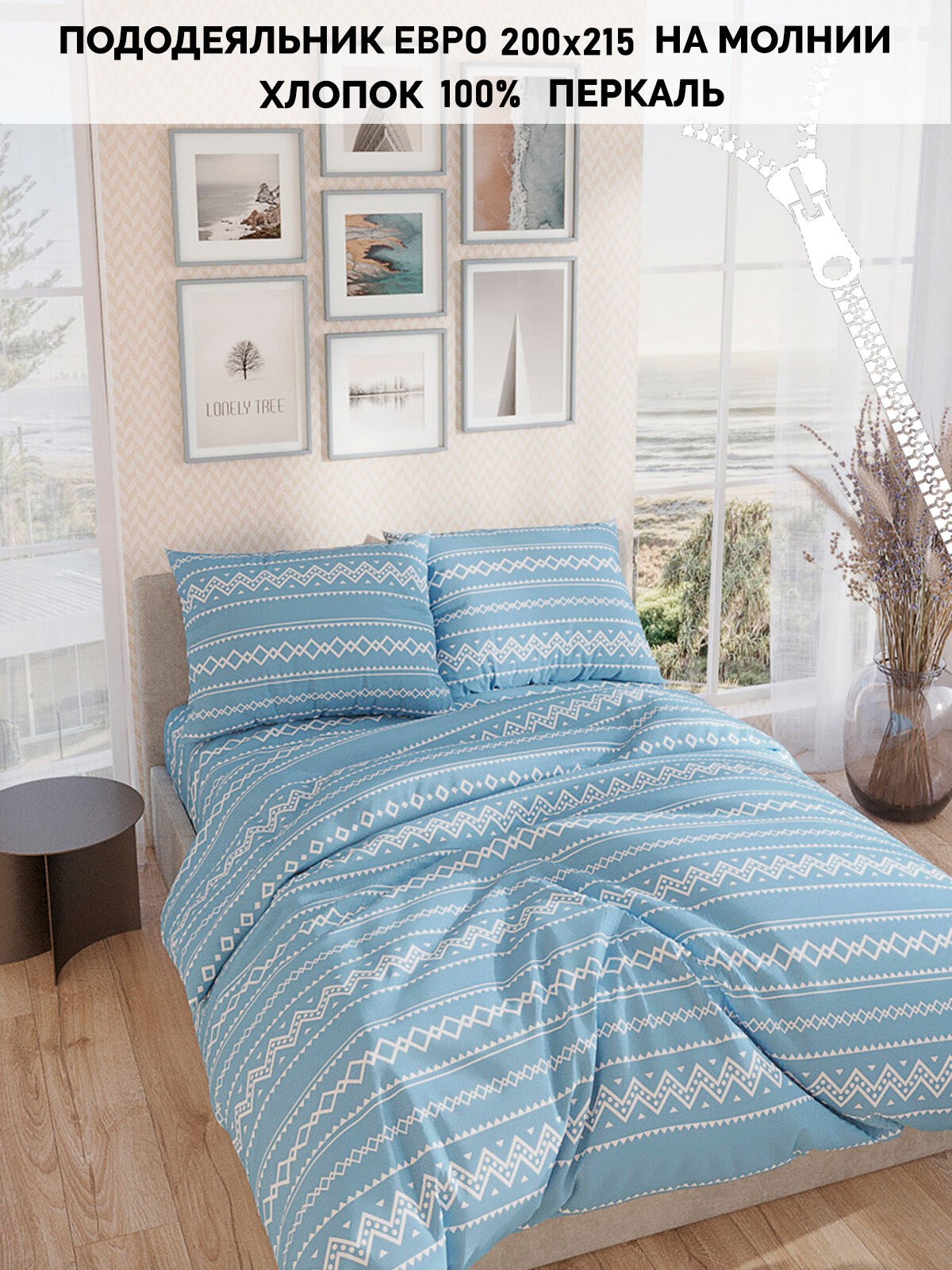 Пододеяльник 200х215 см на молнии, евро, Сказка "Сlouds", ткань перкаль, 100% хлопок