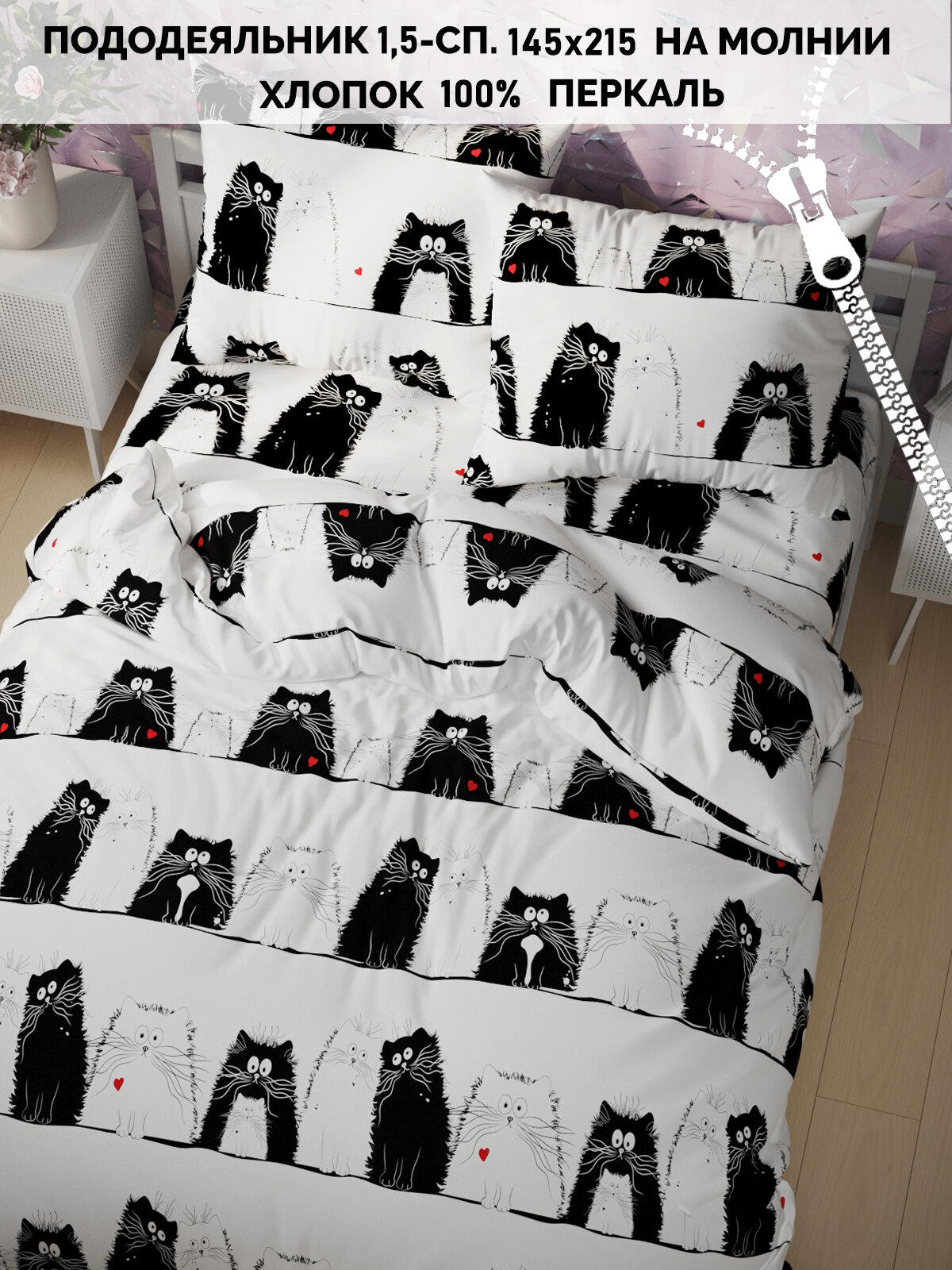 10 цен на Пододеяльник Кот Коттон "Коты" 1,5-сп 145х215 см