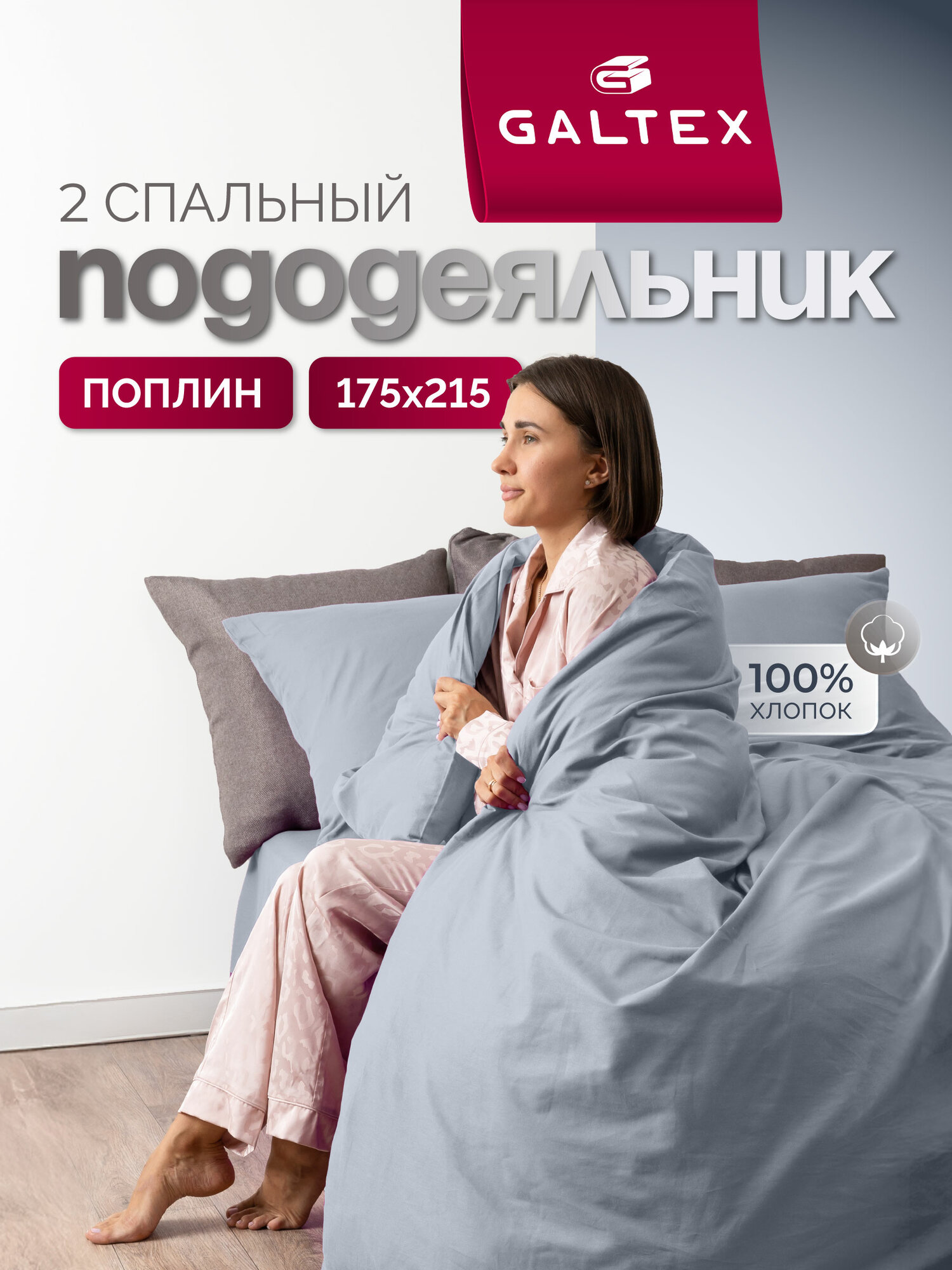 Пододеяльник 2х спальный 175х215 см Galtex однотонный светло-серый поплин 100% хлопок информация: