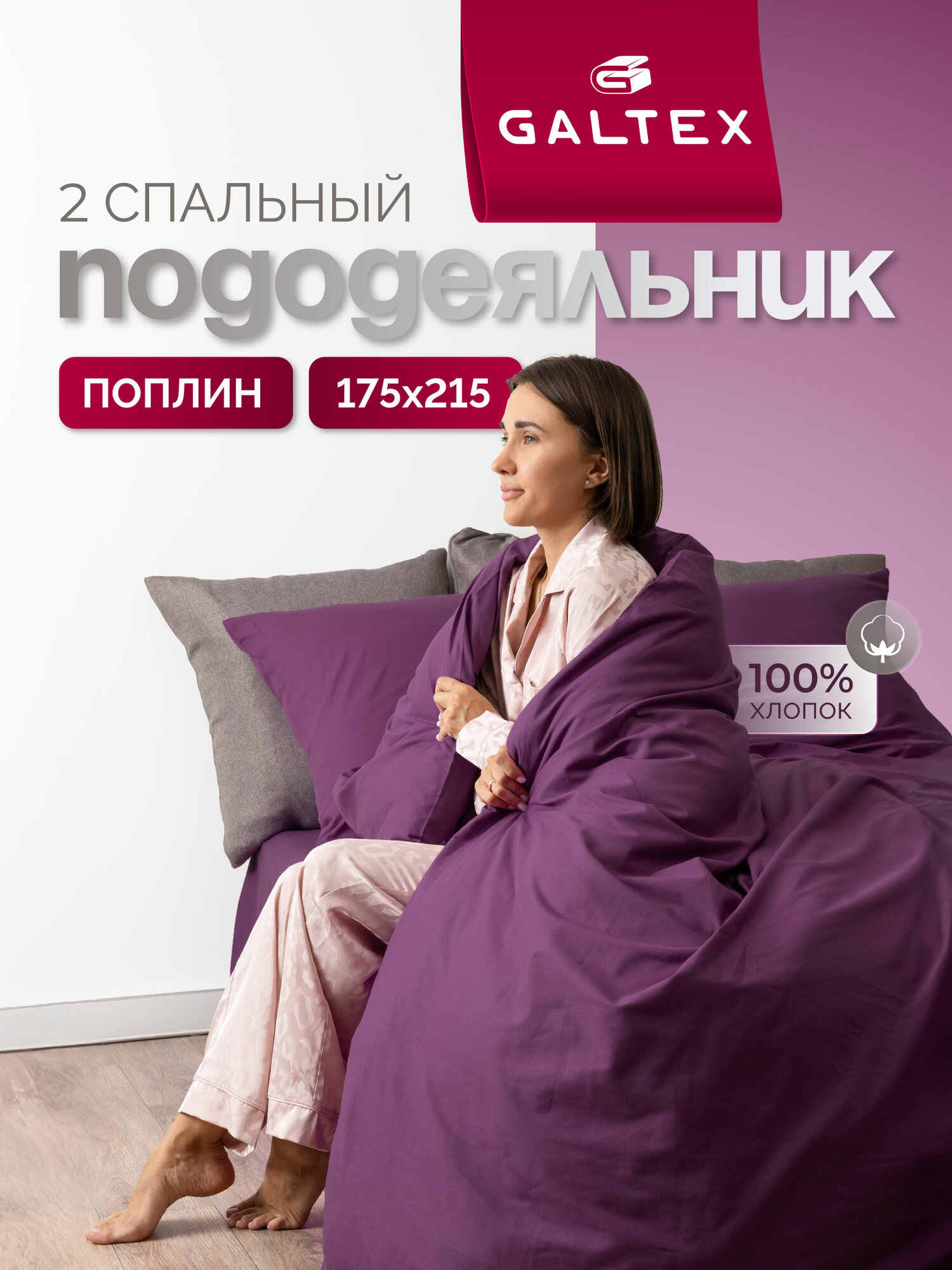Отзывы на Пододеяльник 2-спальный 175х215 Хлопок, Поплин GALTEX красно-фиолетовый