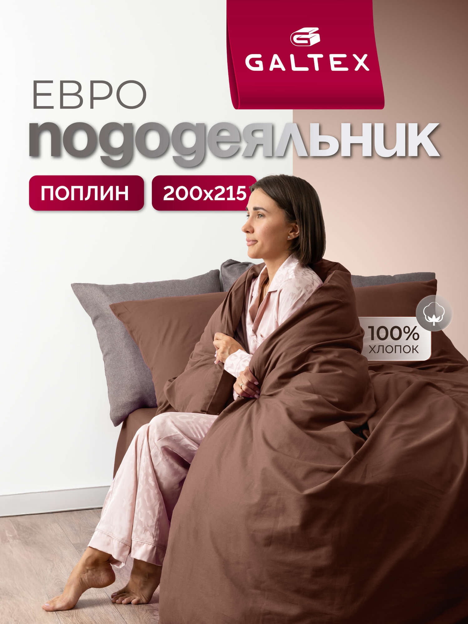 10 цен на Пододеяльник евро 200х220 см Galtex однотонный шоколад поплин 100% хлопок