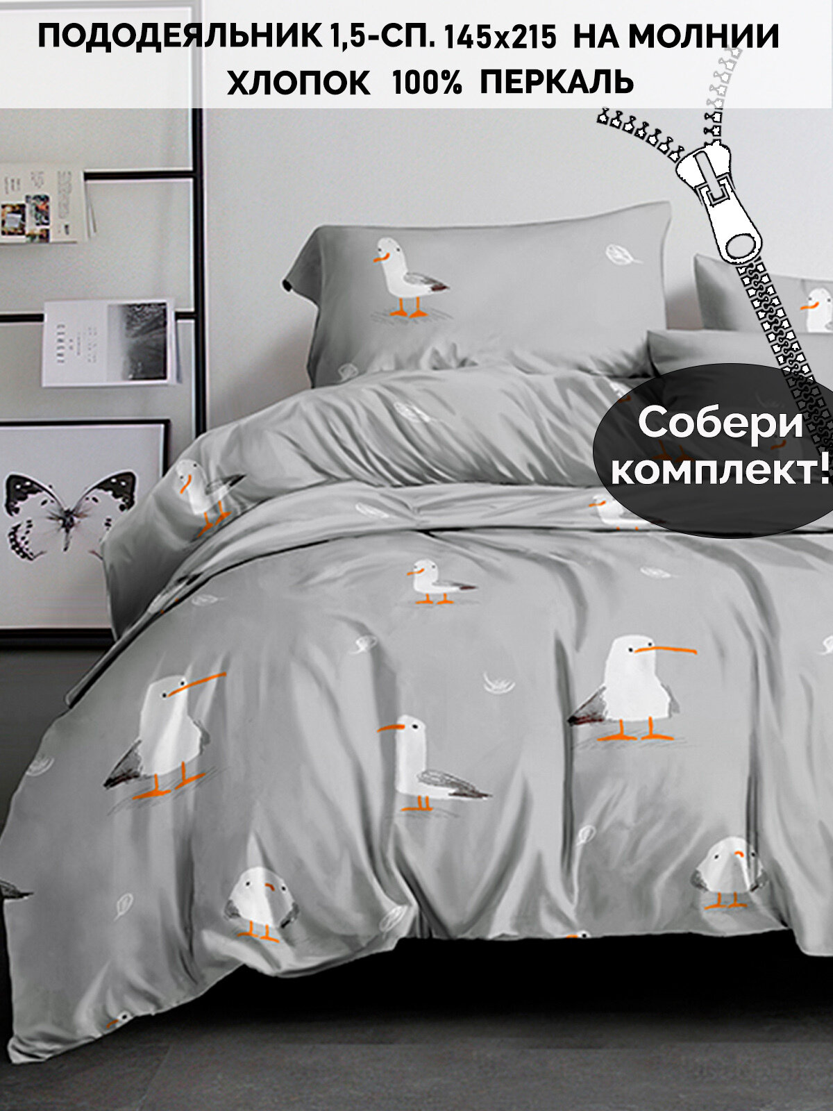 Пододеяльник Кот Коттон "Чайки" 1,5-сп 145х215 см 100% хлопок информация: