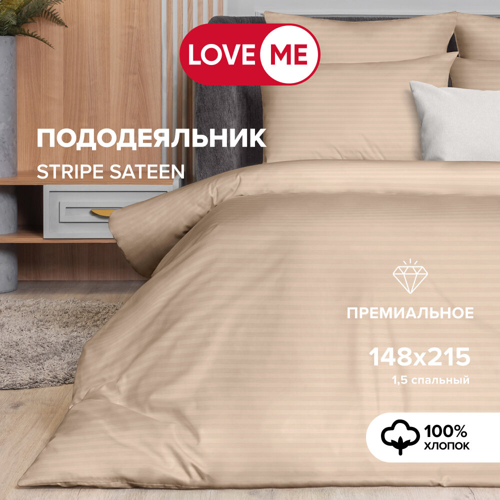 Пододеяльник 1,5 спальный 148х215 см LoveME, страйп-сатин, хлопок 100% информация:
