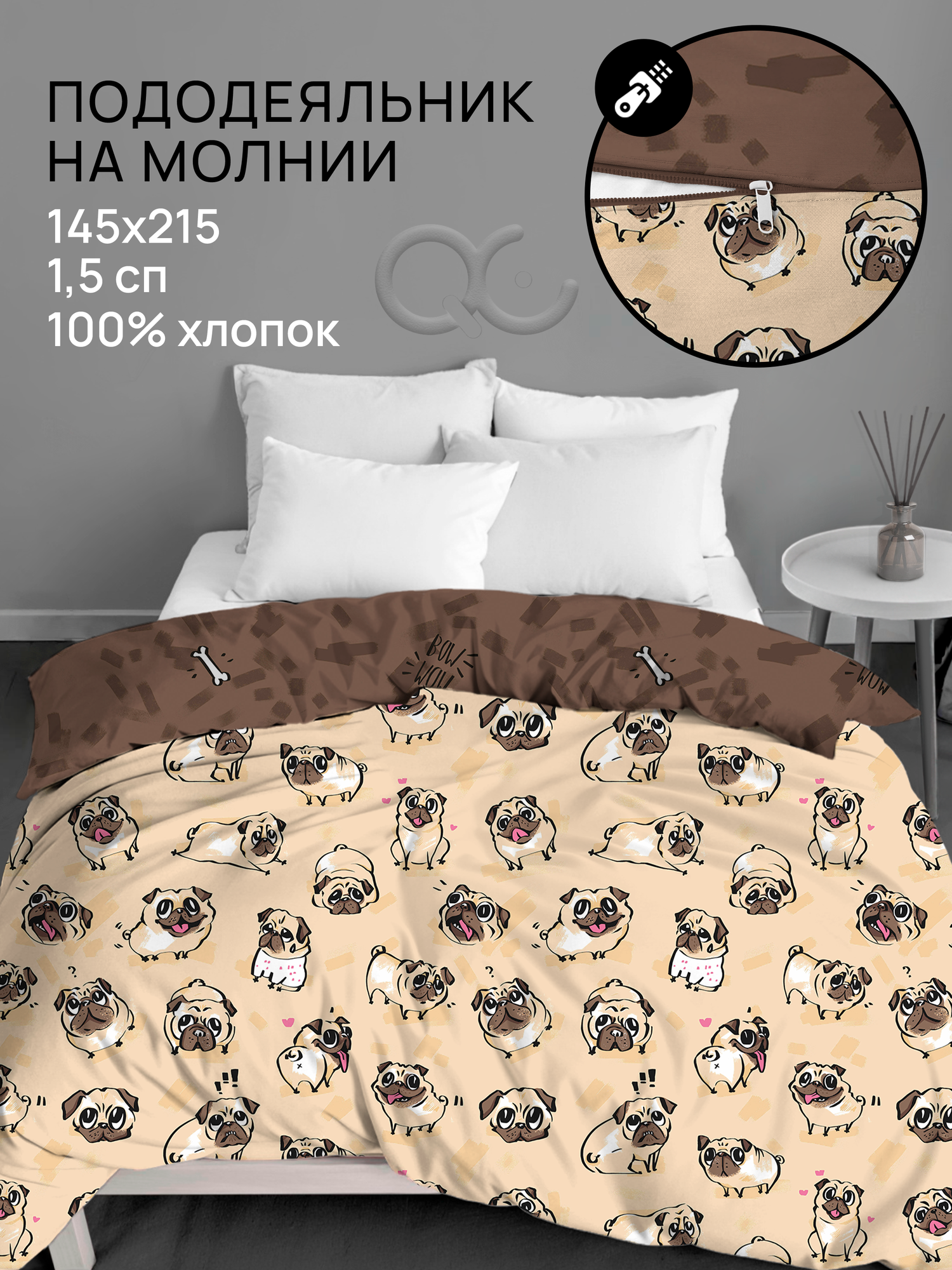 Пододеяльник на молнии Uniqcute 1,5-спальный 145х215 см, Поплин, Рейко информация: