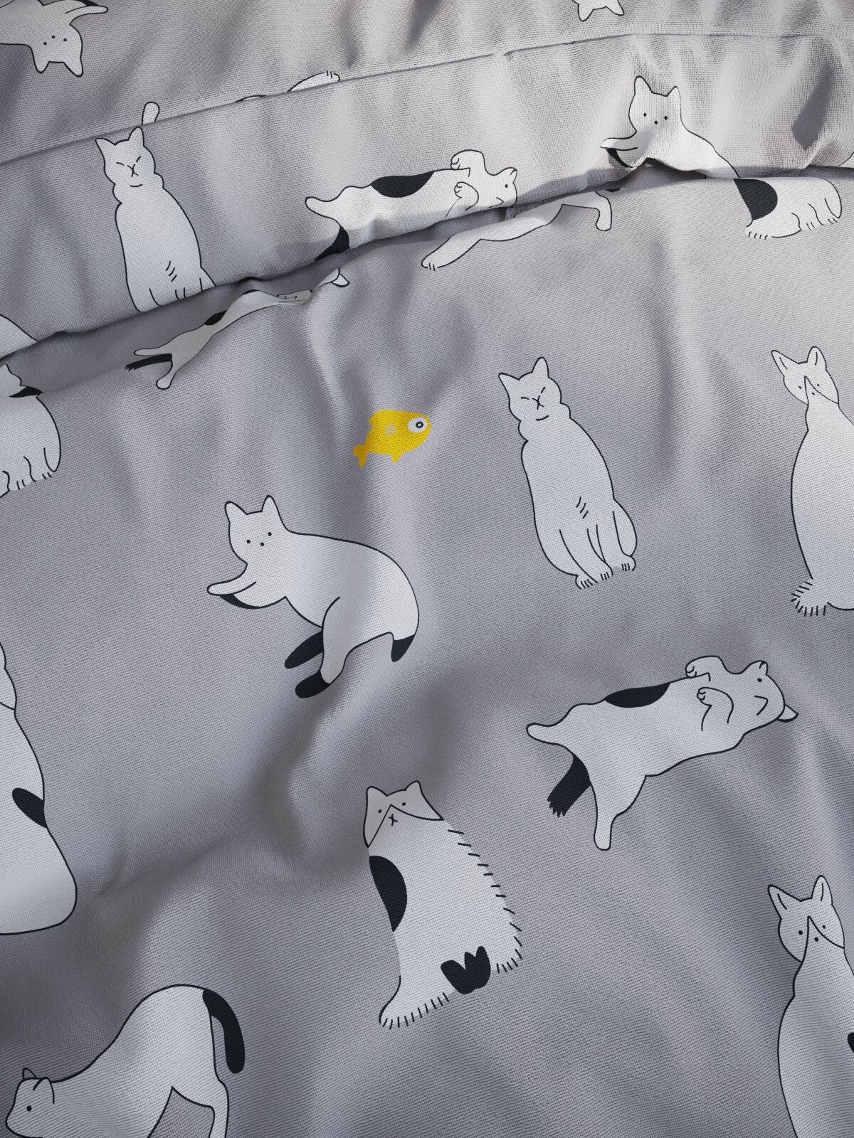 Пододеяльник 145х215 см на молнии, 1,5 спальный, Сказка Сатин "котики (мята)", ткань сатин, 100% хлопок