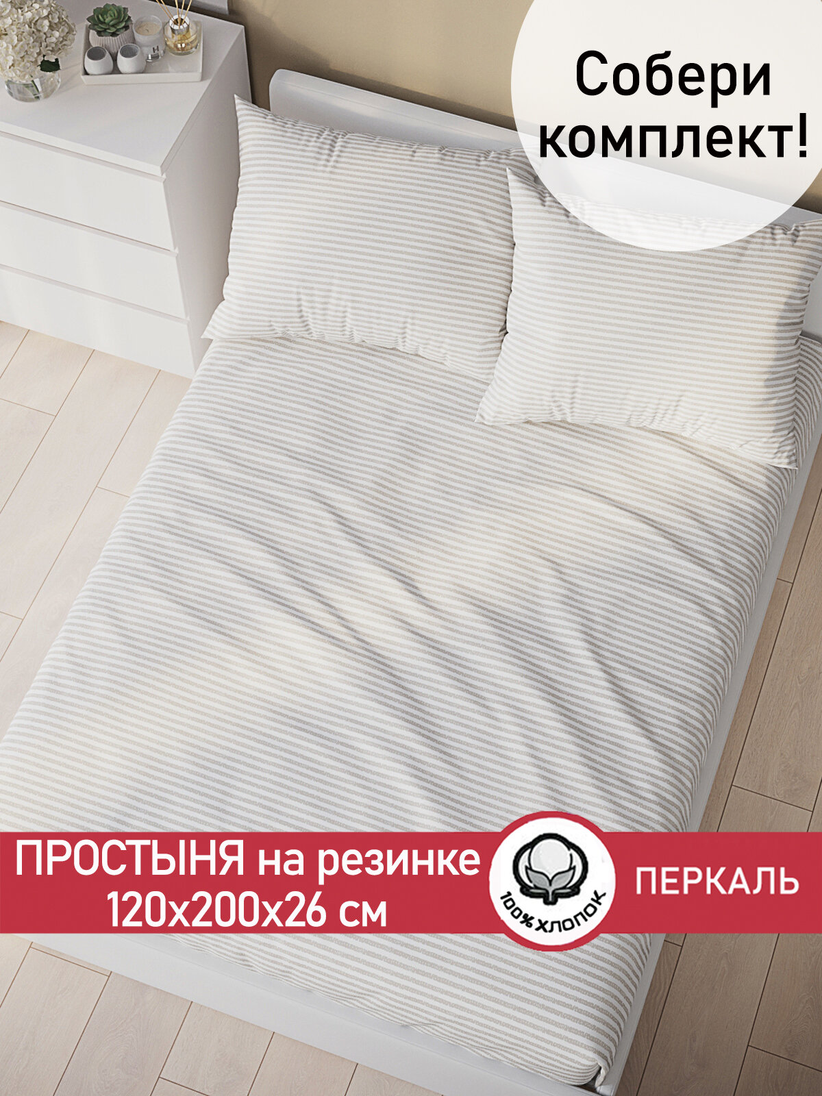 10 цен на Простынь на резинке Сказка "Лутон" 120х200 см, ткань перкаль, 100% хлопок, высота 26 см