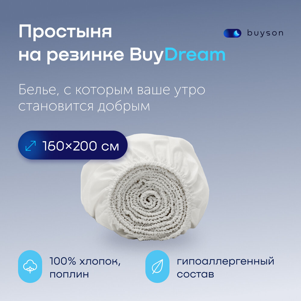 Простыня на резинке buyson BuyDream 160x200 хлопок (поплин), белый информация: