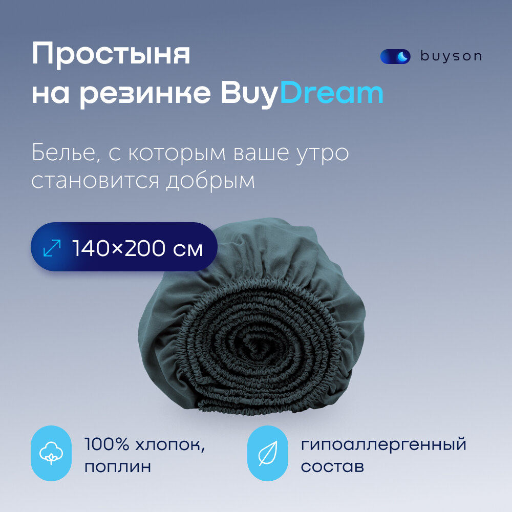 Простыня на резинке buyson BuyDream 140x200 хлопок (поплин), серо-голубой информация: