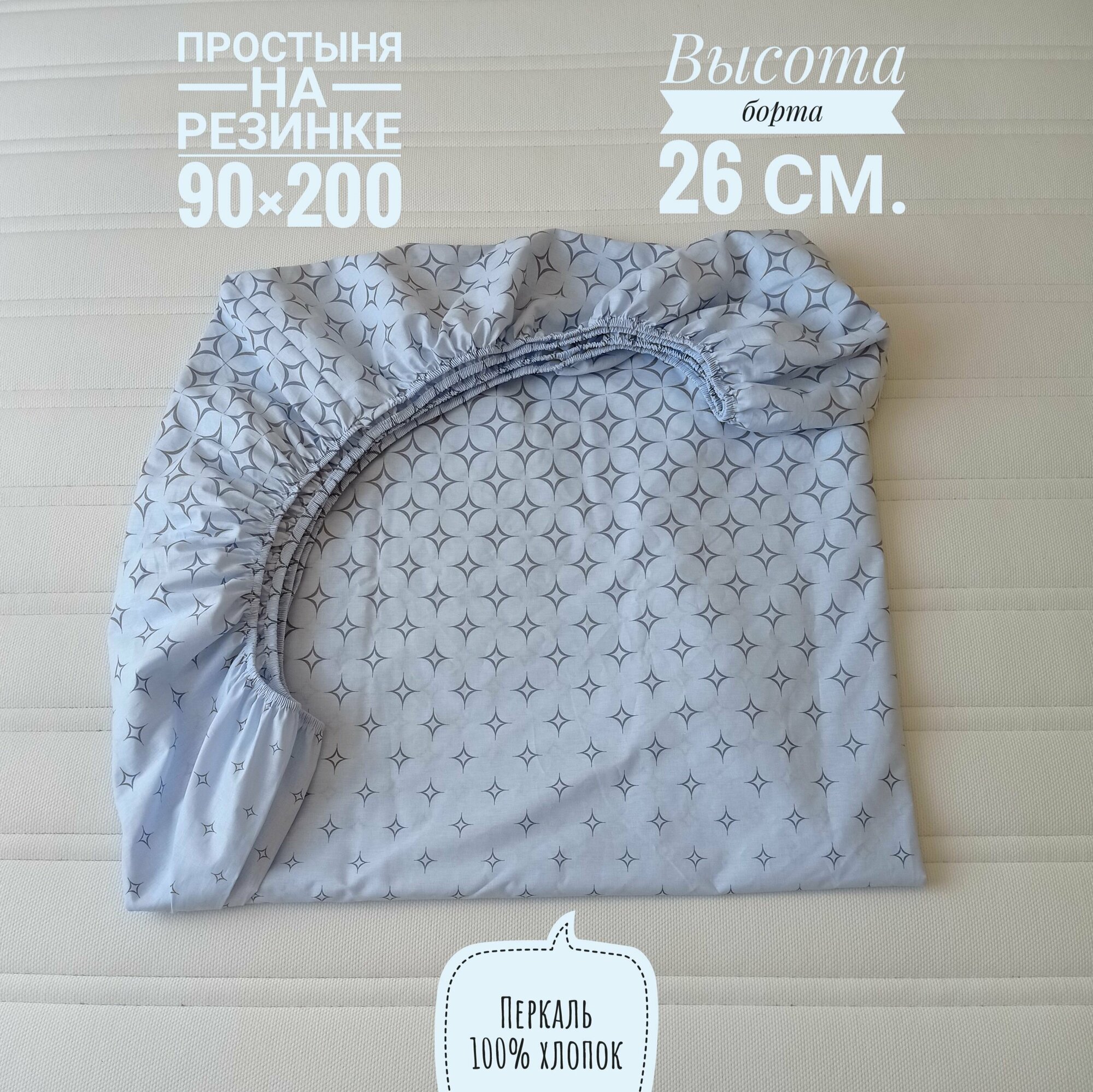 Простынь на резинке Сказка "Сlouds" 90х200 см, ткань перкаль, 100% хлопок, высота 26 см