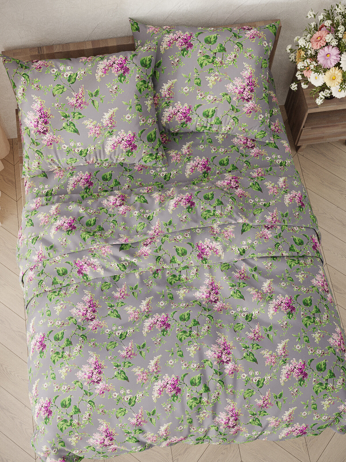 Простынь на резинке Сказка "Сирень" 160х200 см, ткань перкаль, 100% хлопок, высота 26 см информация: