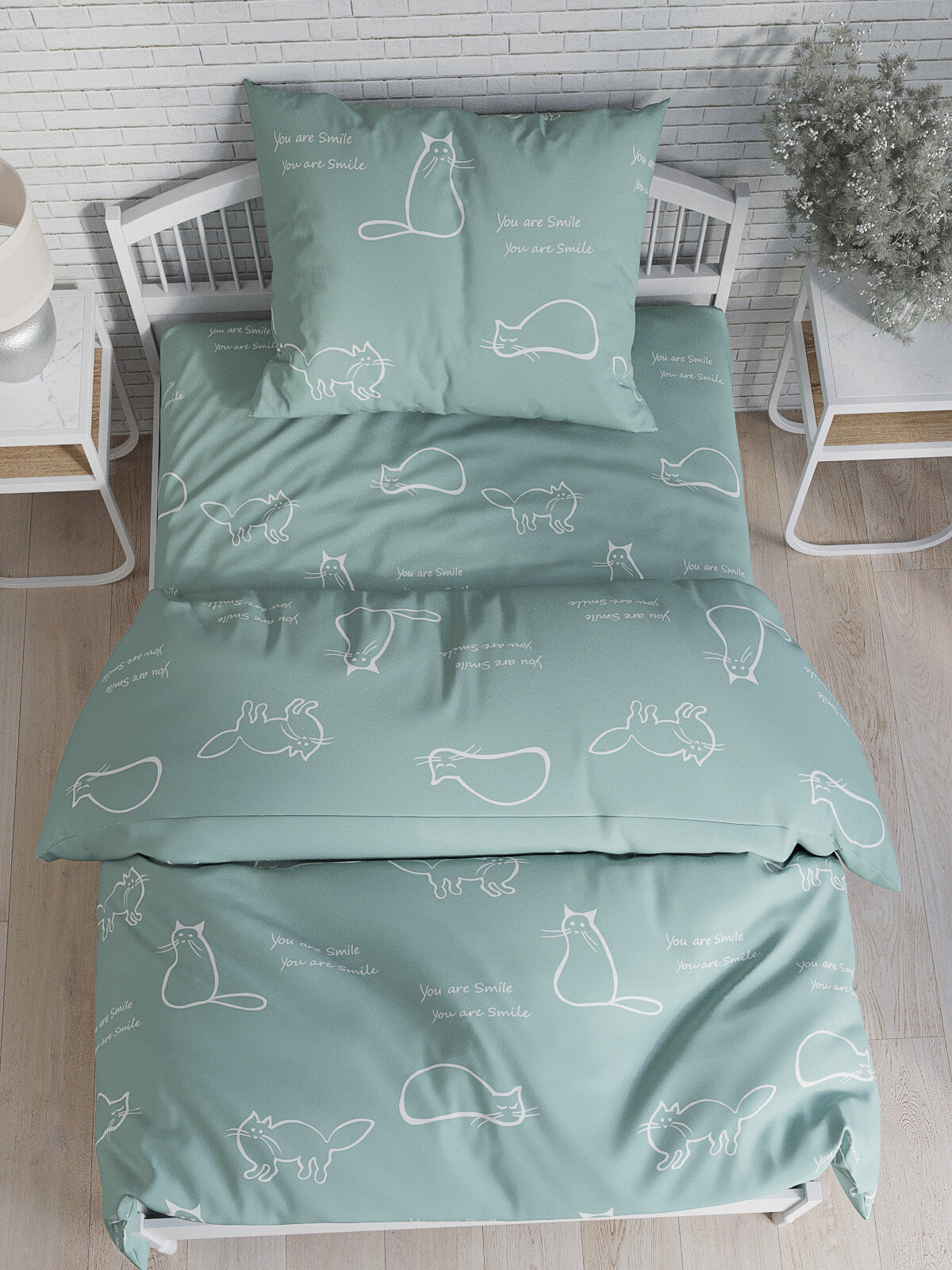 Простынь на резинке Сказка "Котики (мята)" 180х200 см, ткань перкаль, 100% хлопок, высота 26 см 1 184 ₽
