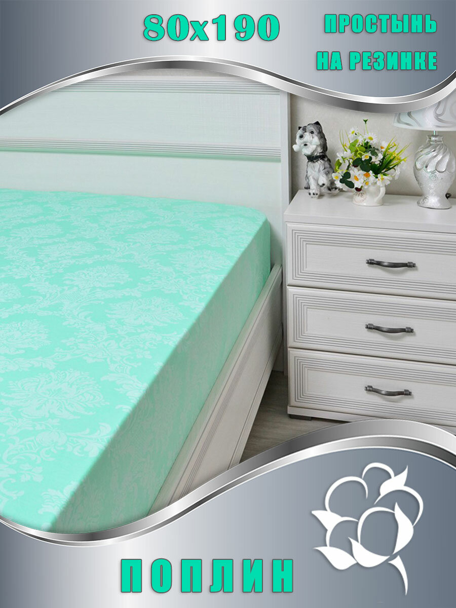 10 цен на Простыня на резинке ПТК "Березка" 80 х 190 см, поплин, цвет мята