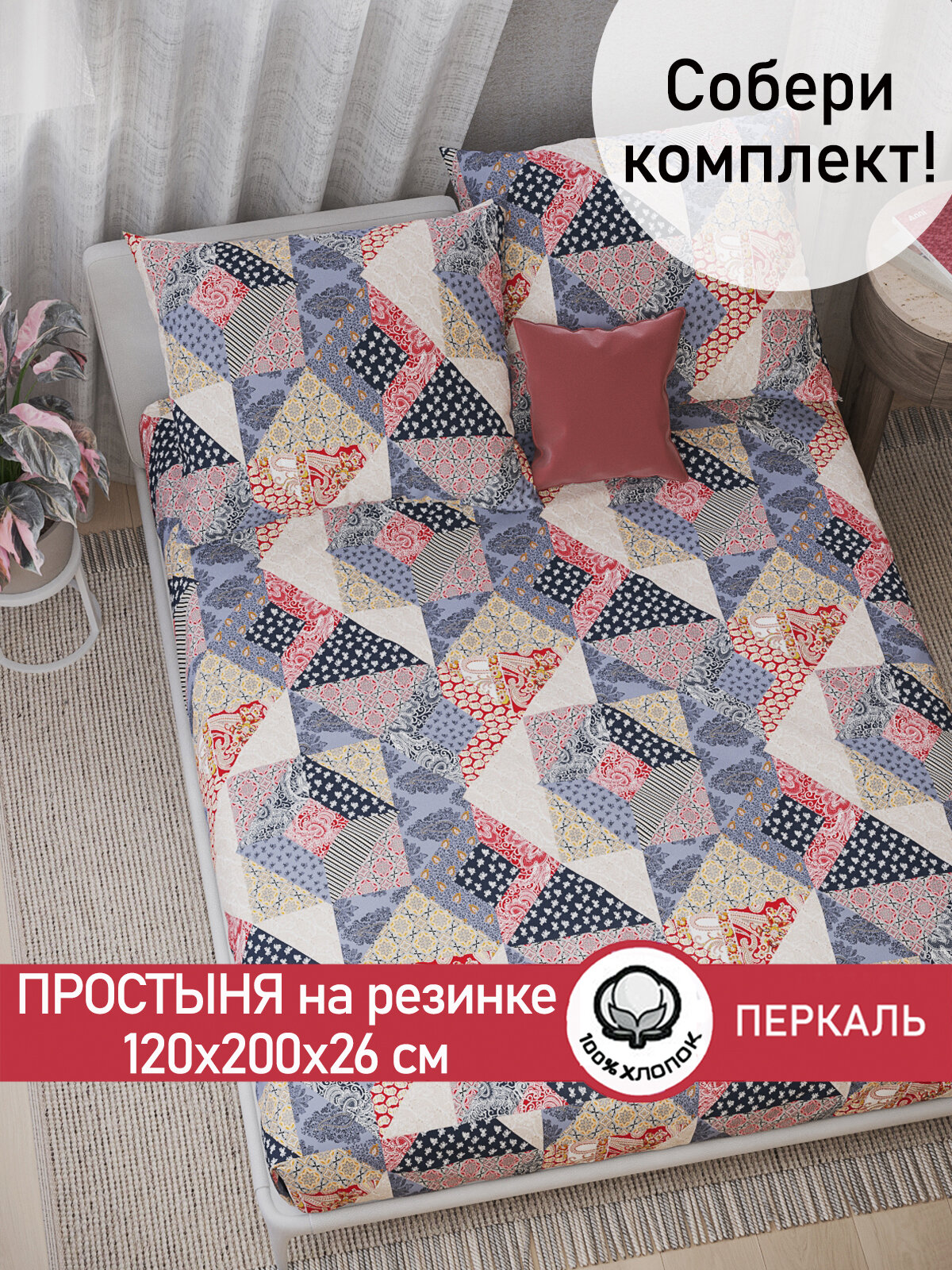 Простынь на резинке Сказка "Пэчворк" 120х200 см, ткань перкаль, 100% хлопок, высота 26 см информация: