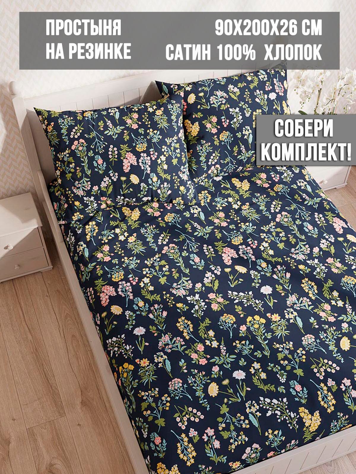 Простыня Milky Garden "Botany" 90x200см, 1.5-спальное, на резинке, сатин, хлопок 100% информация:
