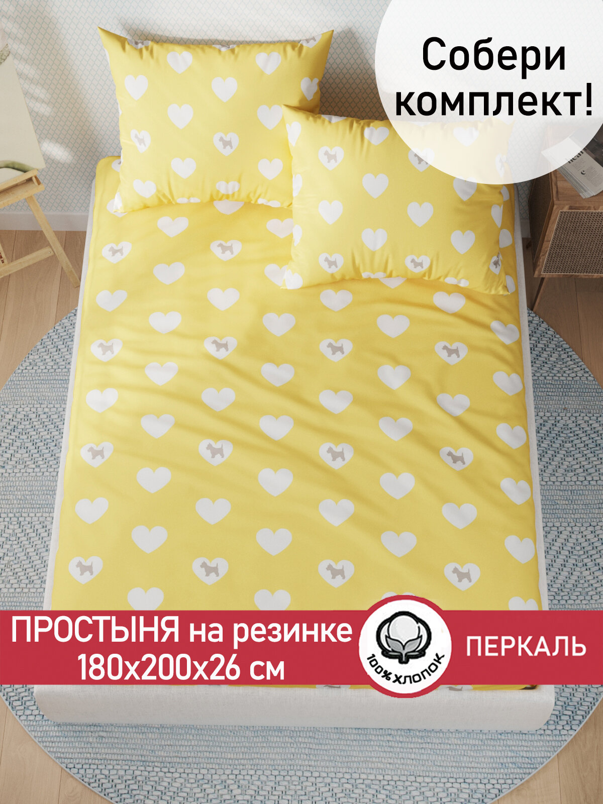 Простынь на резинке Сказка "Жизель" 180х200 см, ткань перкаль, 100% хлопок, высота 26 см информация: