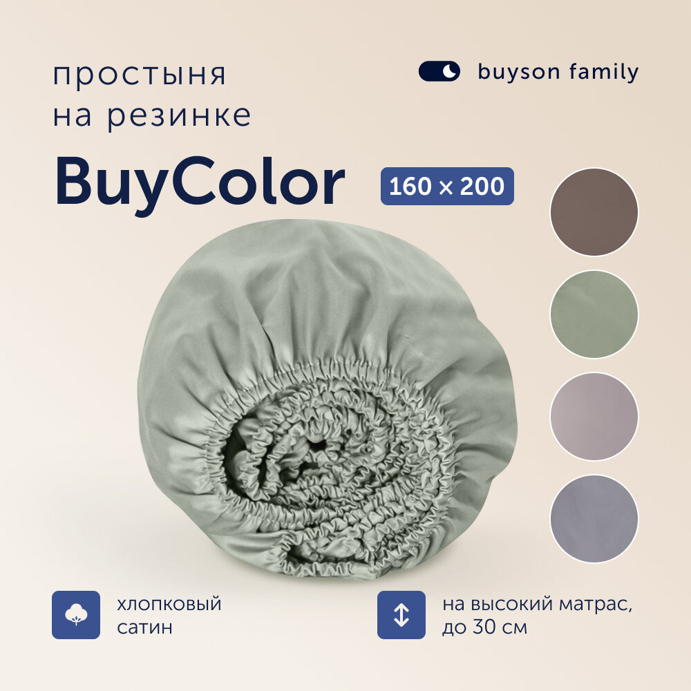 Простыня на резинке buyson family BuyColor 160х200х35 см , хлопок (сатин), Шалфей информация: