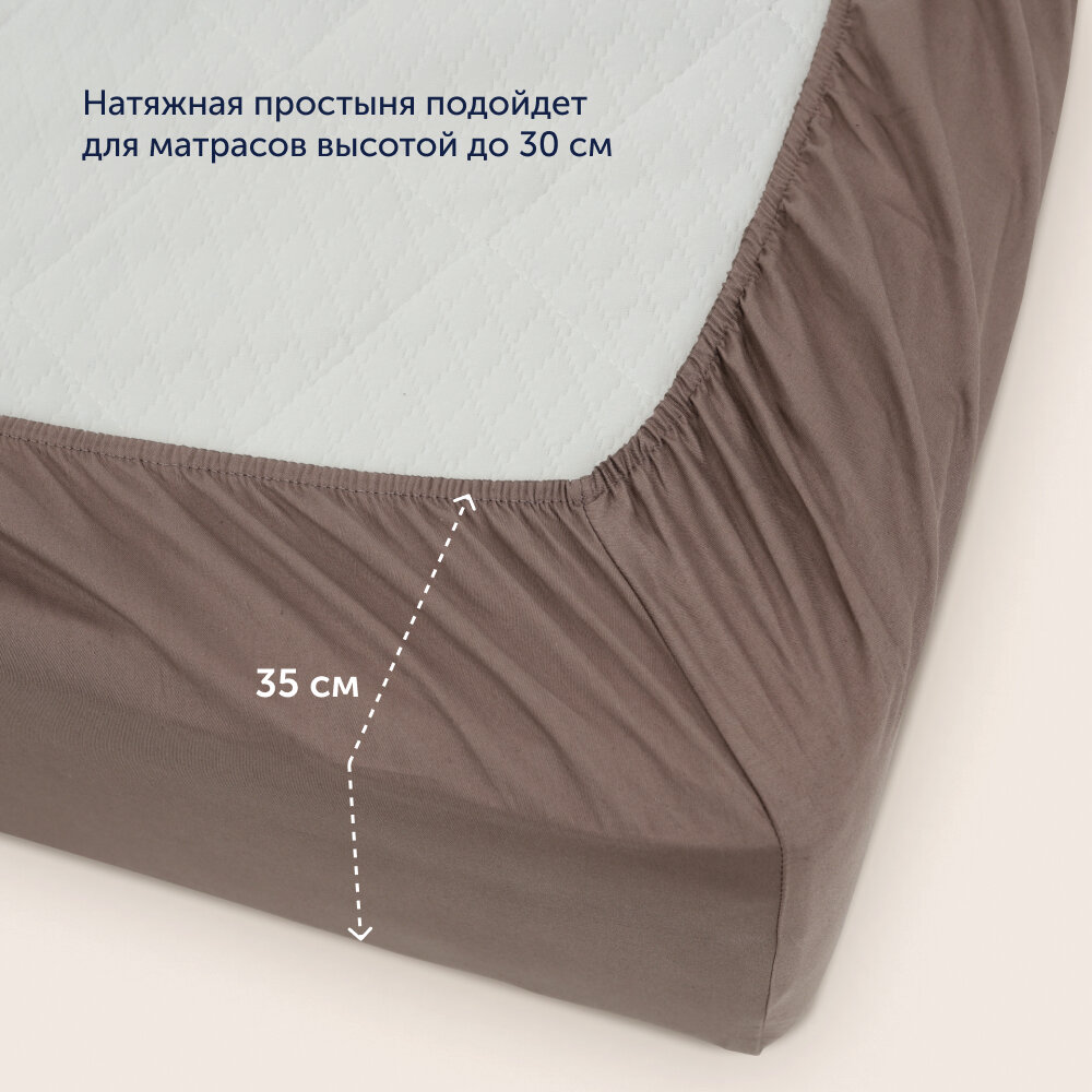 Простыня на резинке buyson family BuyColor 140х200х35 см, хлопок (сатин), Шоколад информация: