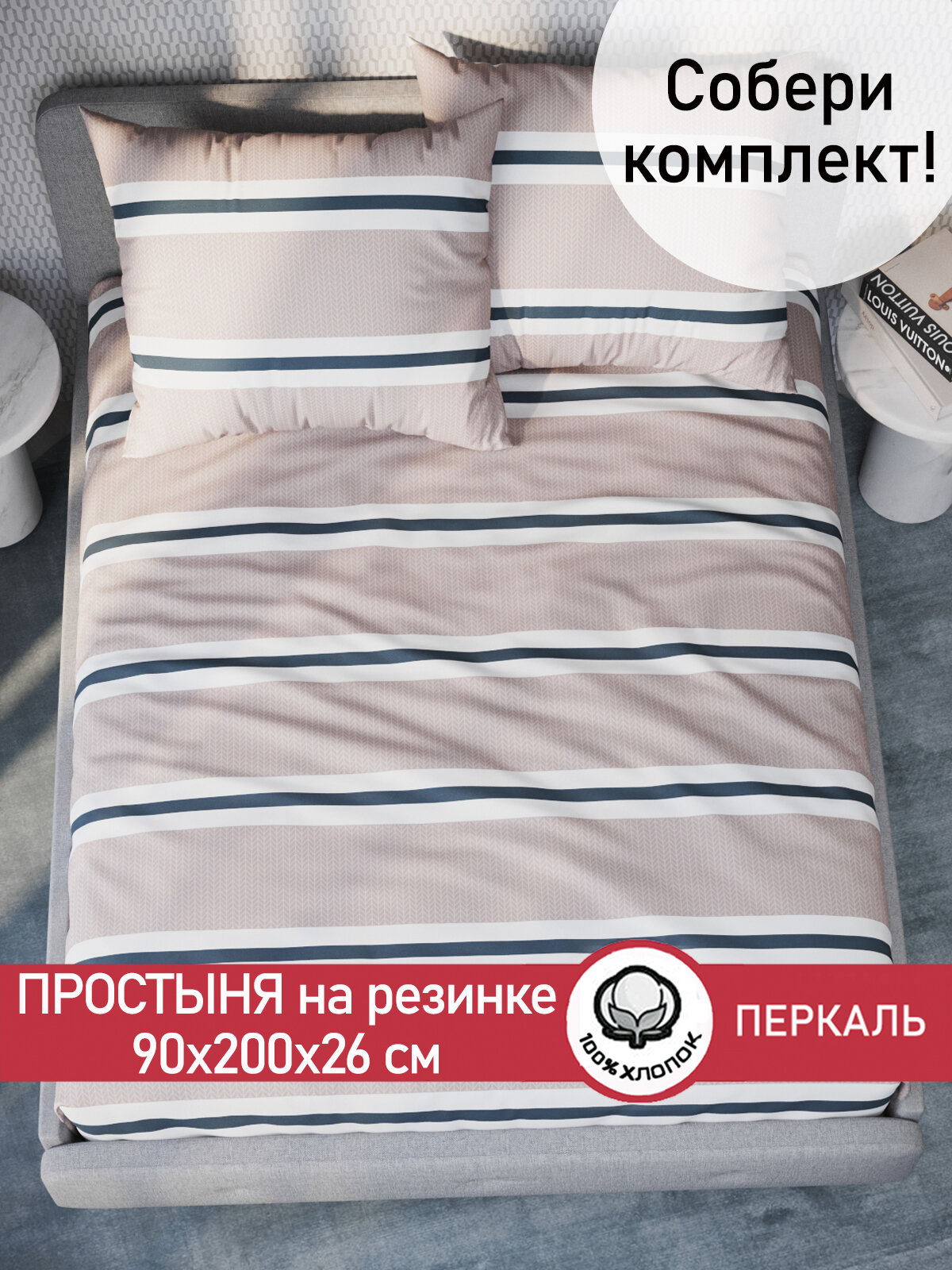 Простынь на резинке Сказка "Аляска (компаньон)" 90х200 см, ткань перкаль, 100% хлопок, высота 26 см информация: