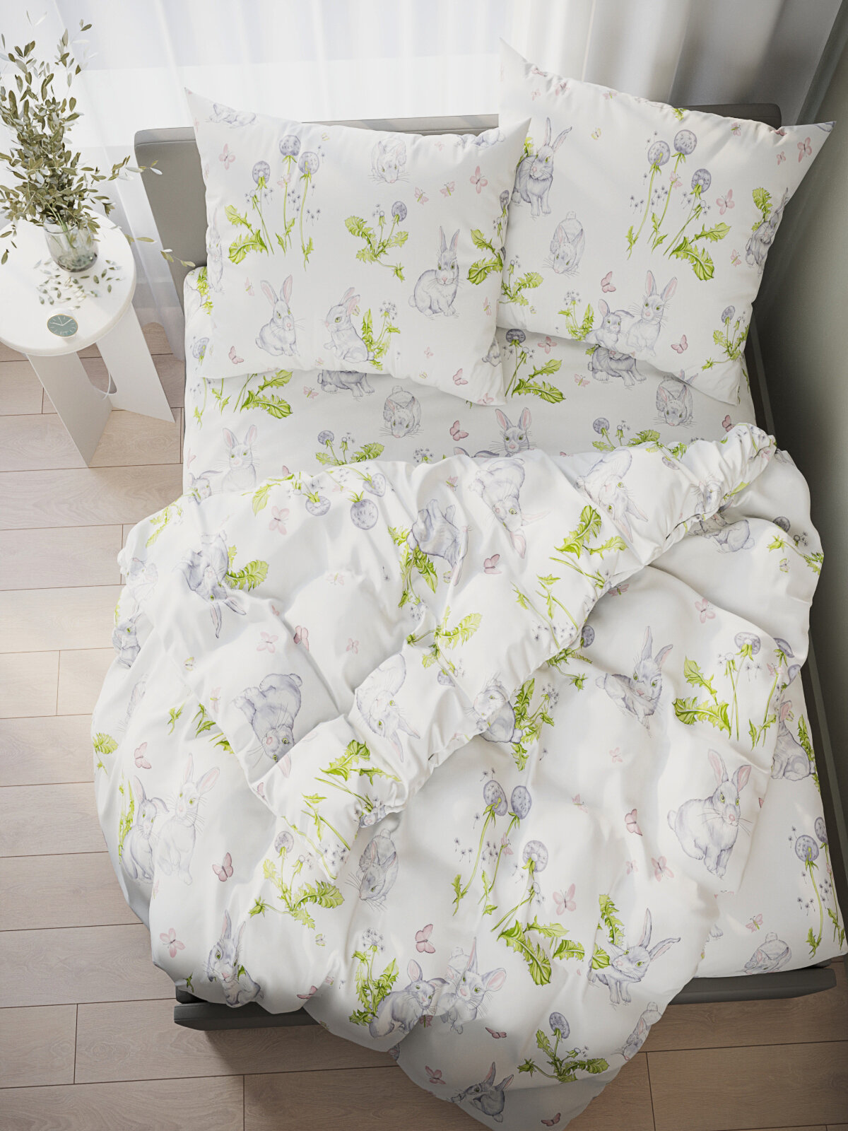 Простынь на резинке Сказка "Кролики" 90х200 см, ткань поплин, 100% хлопок, высота 26 см 862 ₽