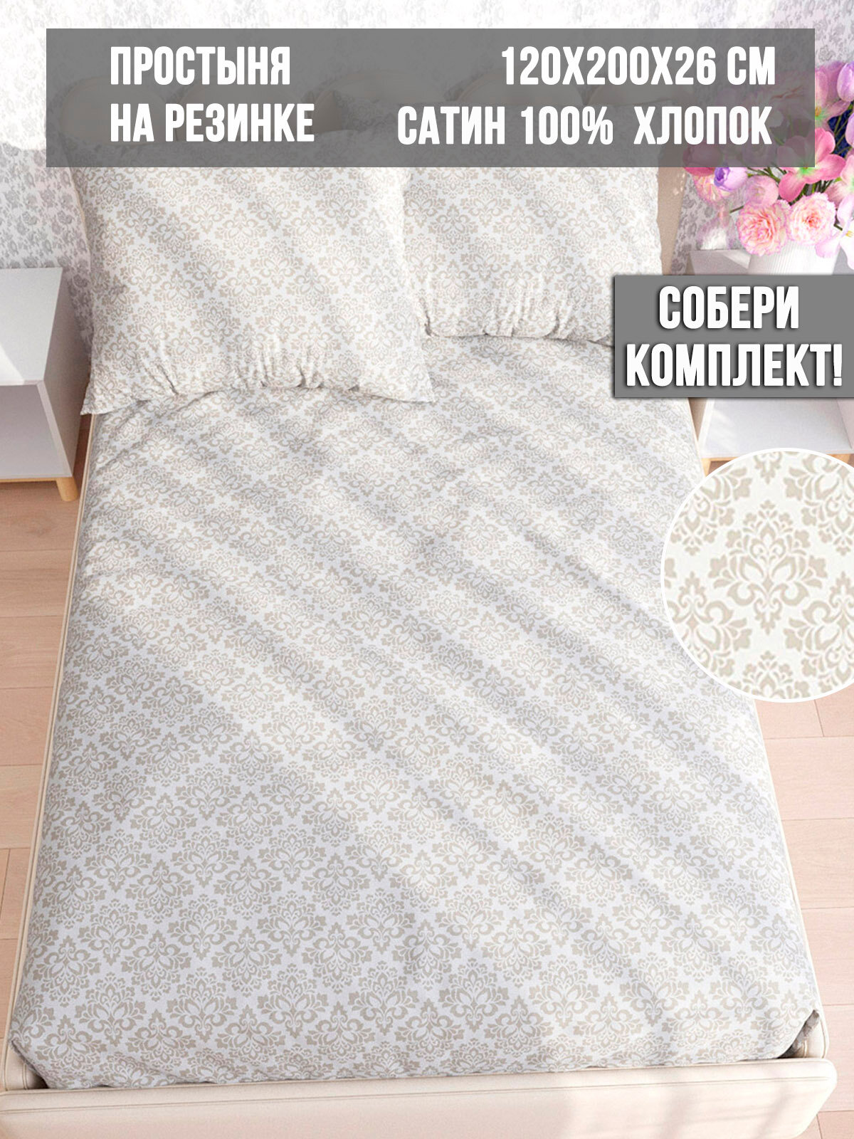 Простынь Milky Garden "Classic" 120х200 см 1.5-спальная, на резинке, сатин, хлопок 100% информация:
