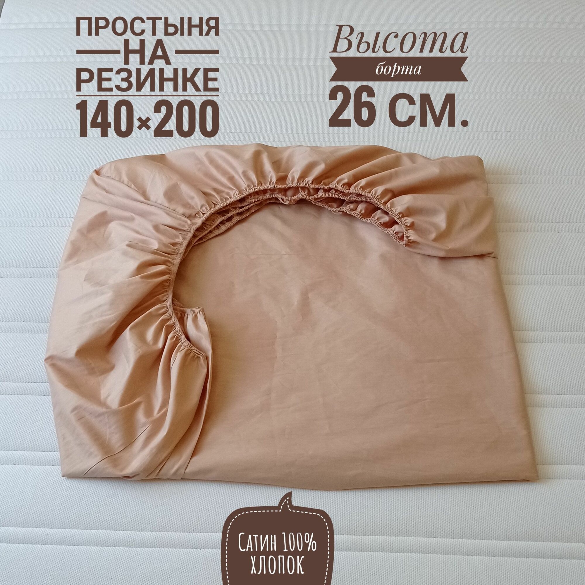 Простыня на резинке KA-textile 140х200, Сатин, Жареный миндаль информация: