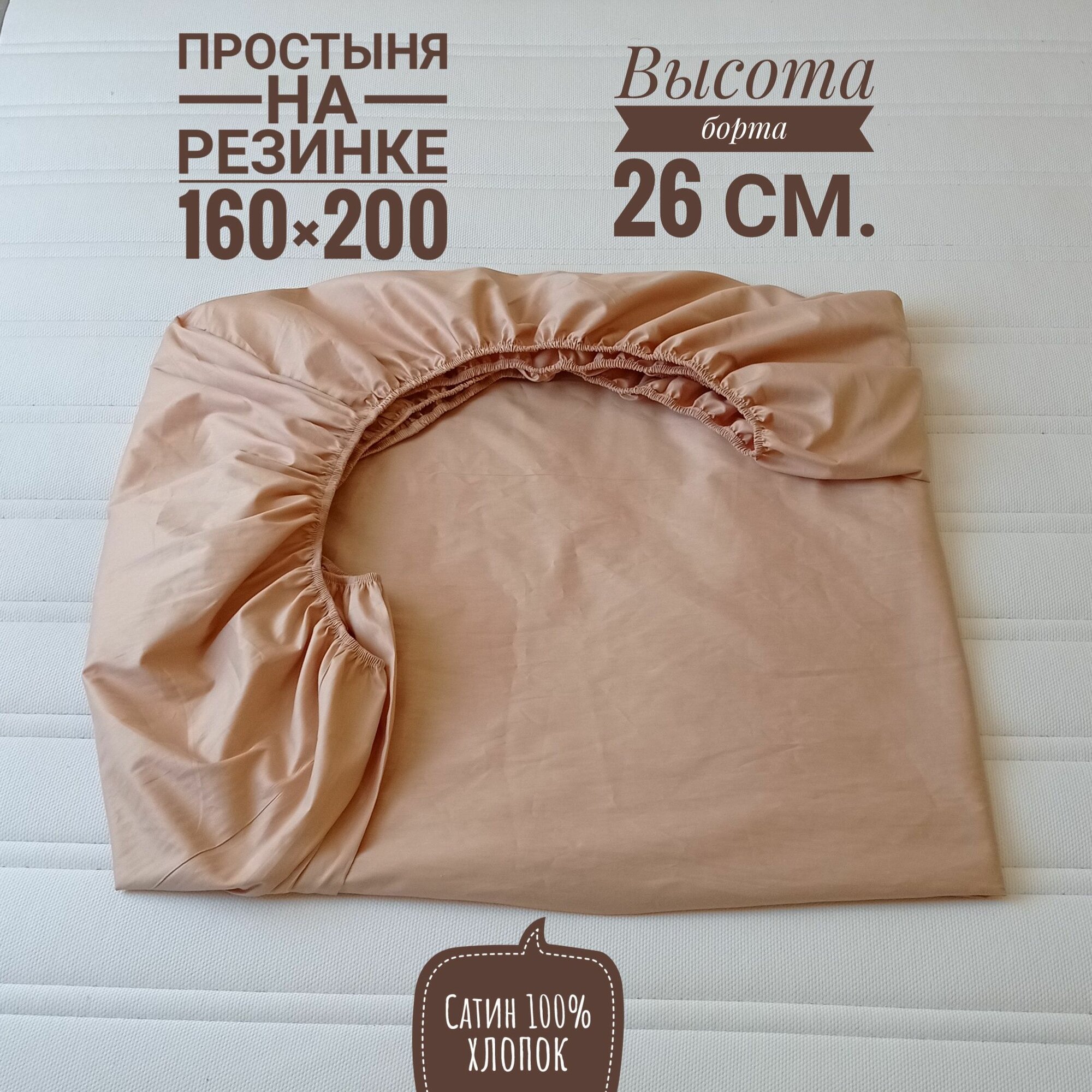 10 цен на Простыня на резинке KA-textile 160х200, Сатин, Жареный миндаль