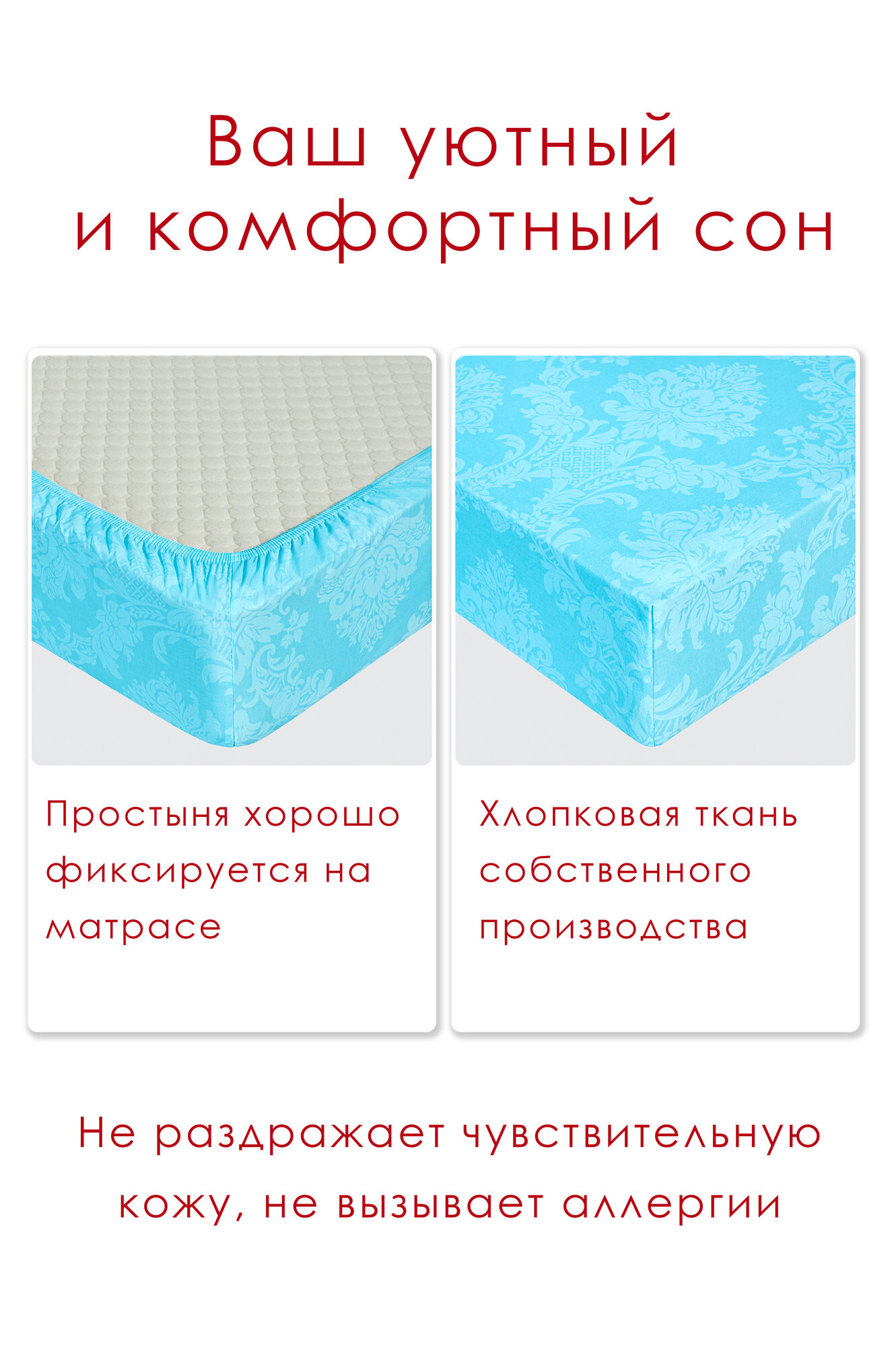 Простынь на резинке 180х200 см Миланика Аквамарин поплин, 100% хлопок информация: