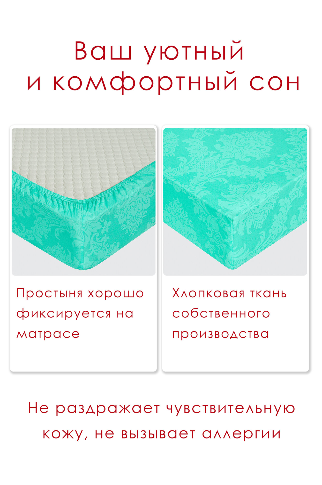 Простынь на резинке 180х200 см Миланика Бирюза поплин, 100% хлопок информация: