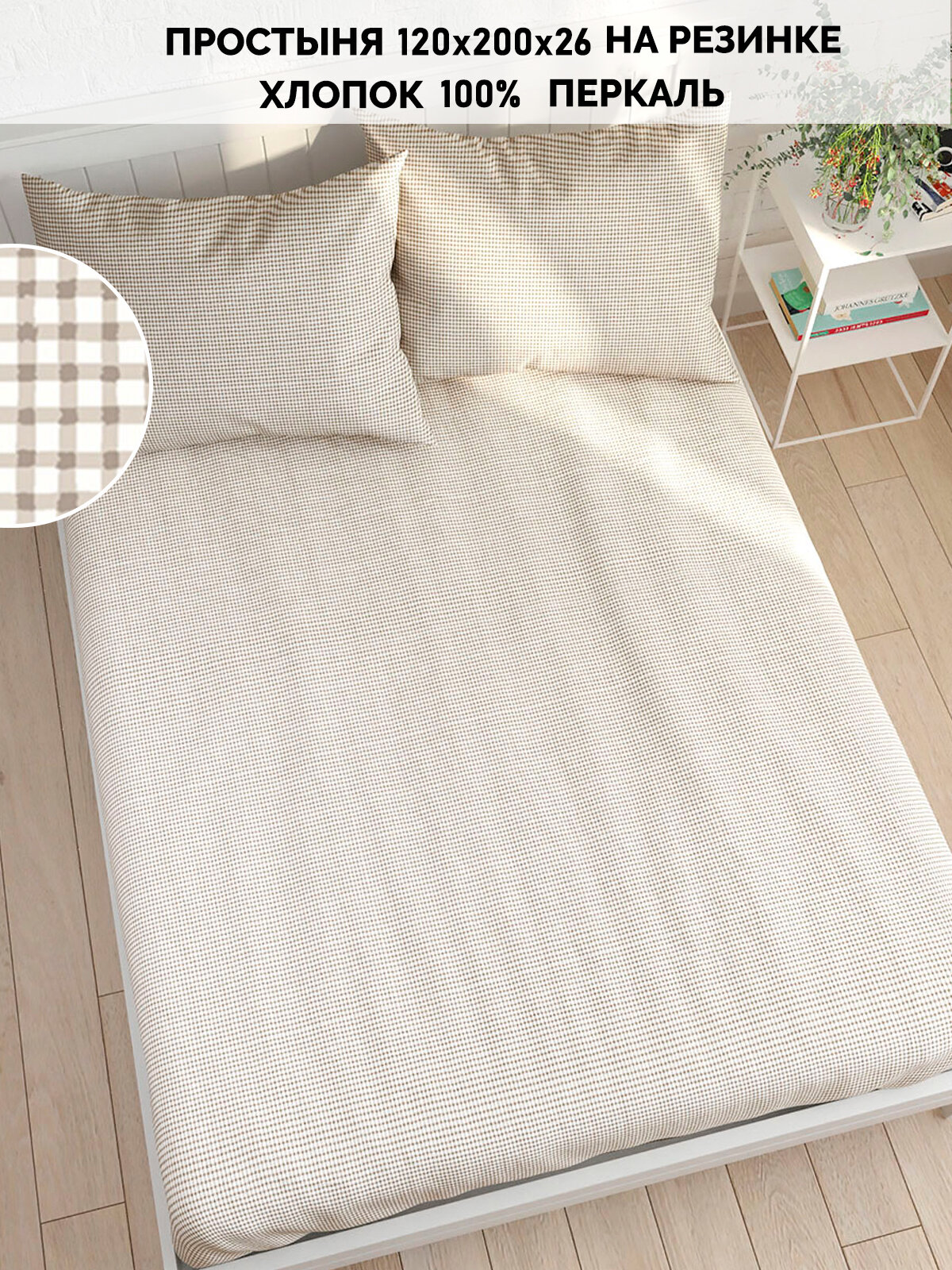 10 цен на Простынь на резинке Кот Коттон "Бежевая клеточка" 120х200 см