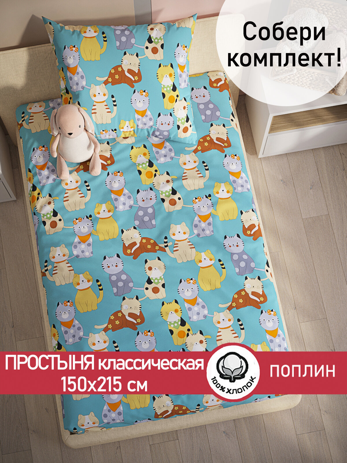 10 цен на Простынь классическая Cказка "Мурлыки" 150х215 см, ткань поплин, 100% хлопок