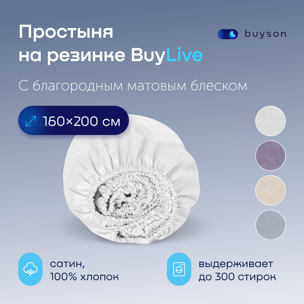 Простыня на резинке BuyLive 160х200 см, хлопок (сатин) белый информация: