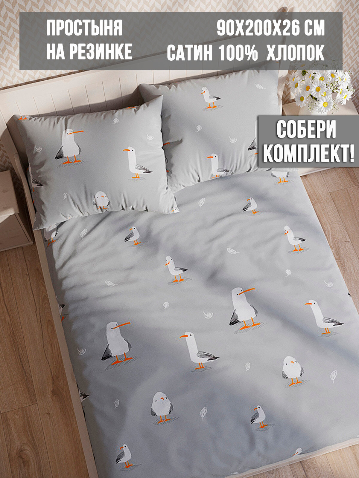 Простынь на резинке Milky Garden "Seagull" 90х200, сатин, хлопок 100% информация: