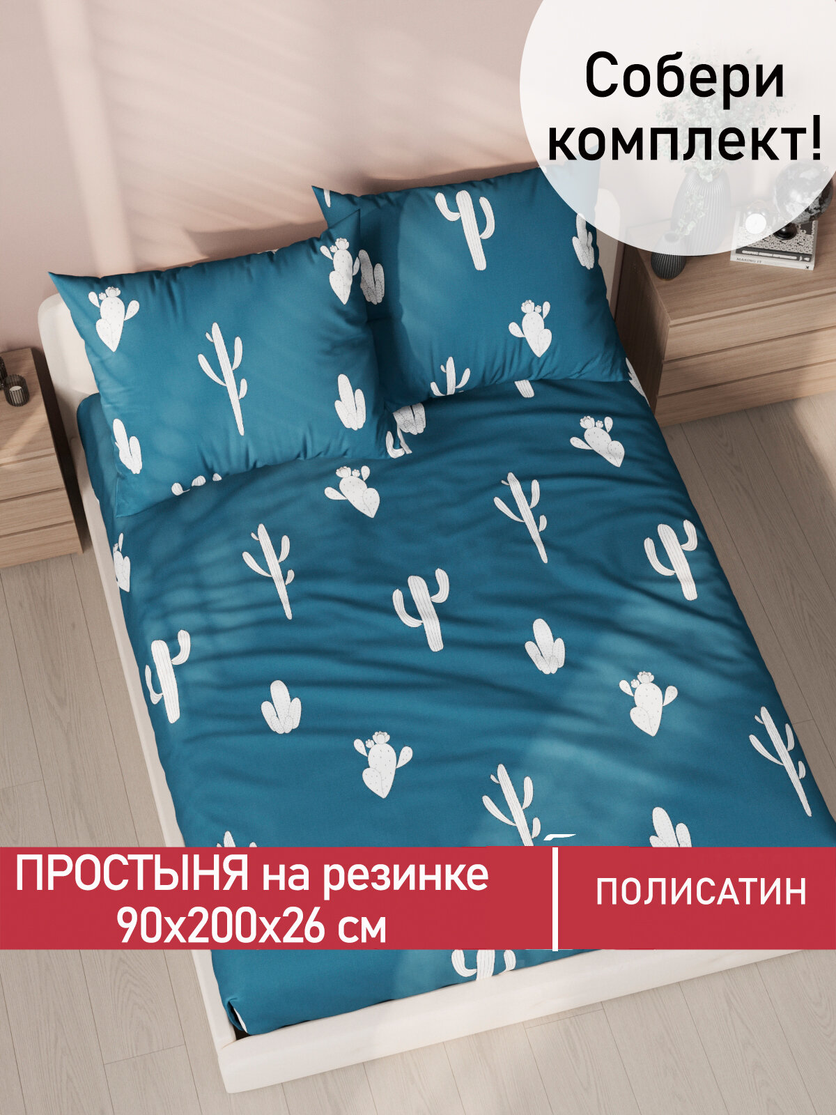 10 цен на Простынь на резинке Мечта "Кактус" 90х200 см , ткань полисатин