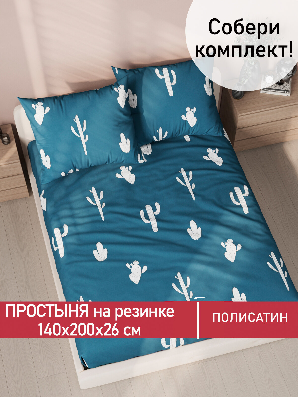 10 цен на Простынь на резинке Мечта "Кактус" 140х200 см , ткань полисатин