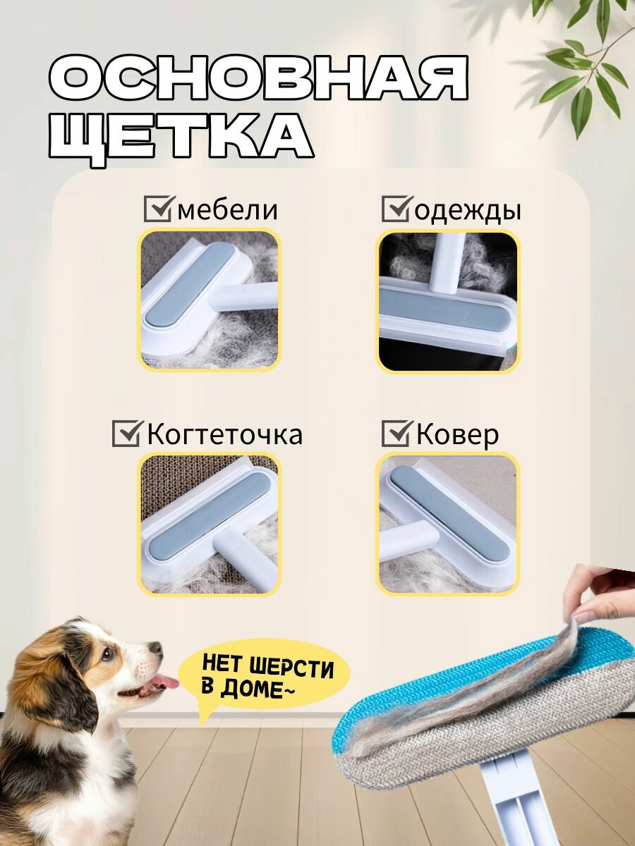 Щетка многофункциональная от шерсти животных 4 в 1,Щетка для одежды легко справляется с шерстью кошек и собак информация: