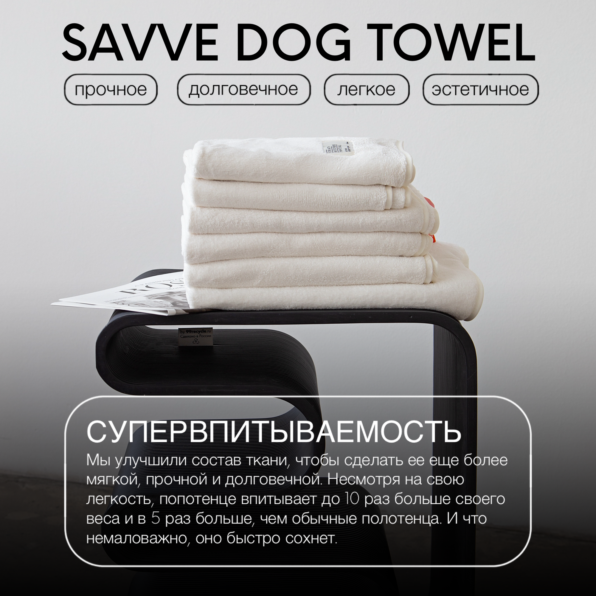 Полотенце для собак SAVVE Dog Towel, супервпитывающее из микрофибры, M 90*60, белый информация: