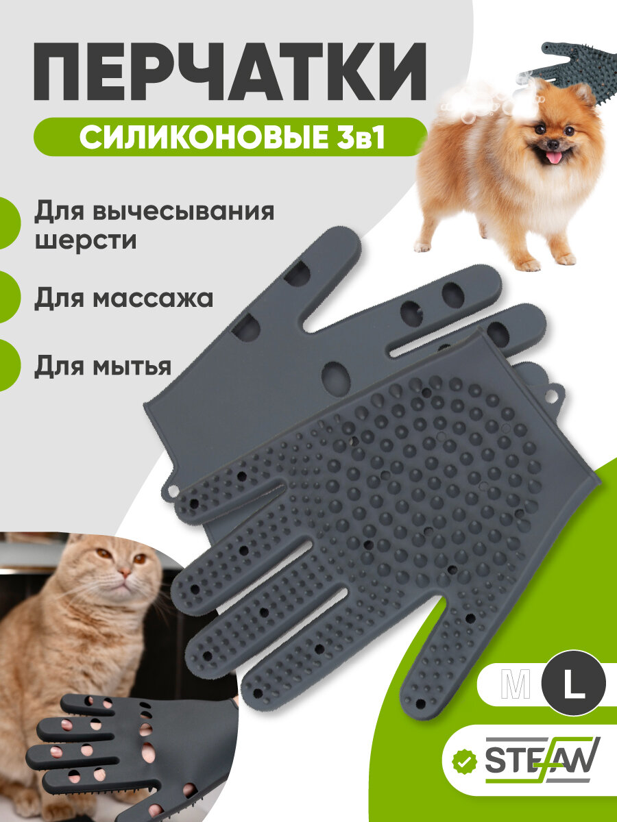 Отзывы на Перчатки силиконовые для мытья домашних животных STEFAN, размер L, серый, WF71201