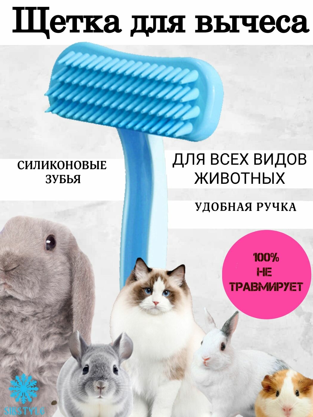 10 цен на Силиконовая щетка р. М, расческа для вычеса шерсти всех видов животных, для груминга, в домашних условиях, с массажным эффектом (сине-голубой)
