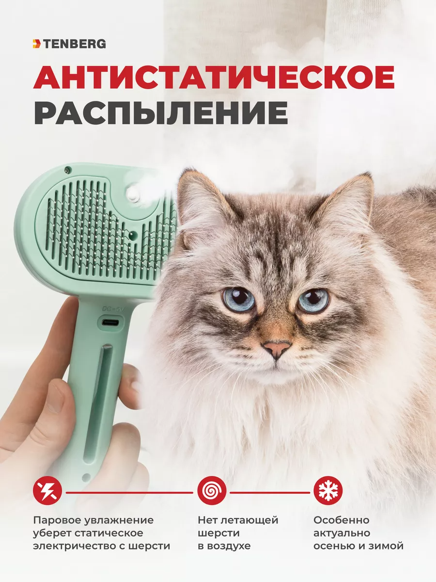 Отзывы на Паровая расческа для кошек и собак TENBERG Levity Green / Щетка с паром для животных / NEW