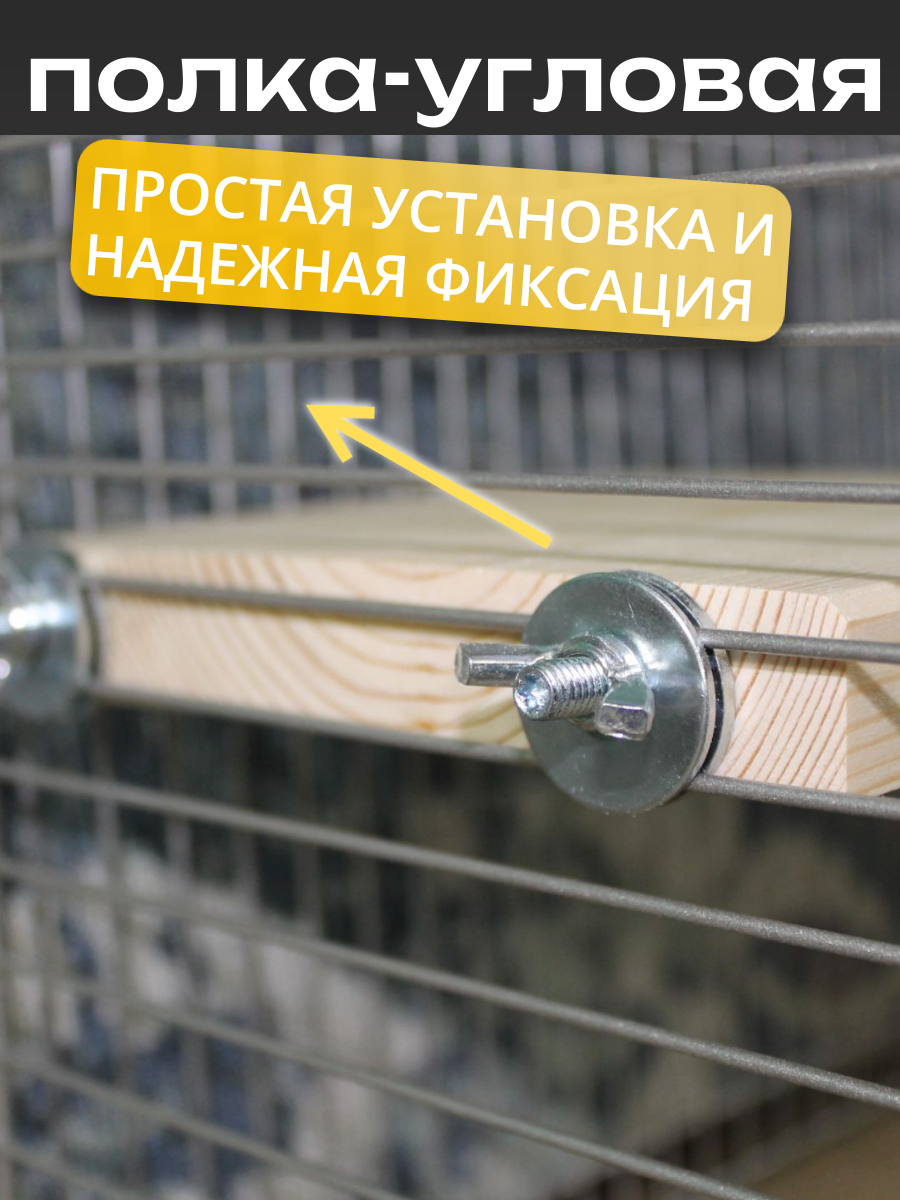 Деревянная, угловая полка в клетку для грызунов и попугай информация: