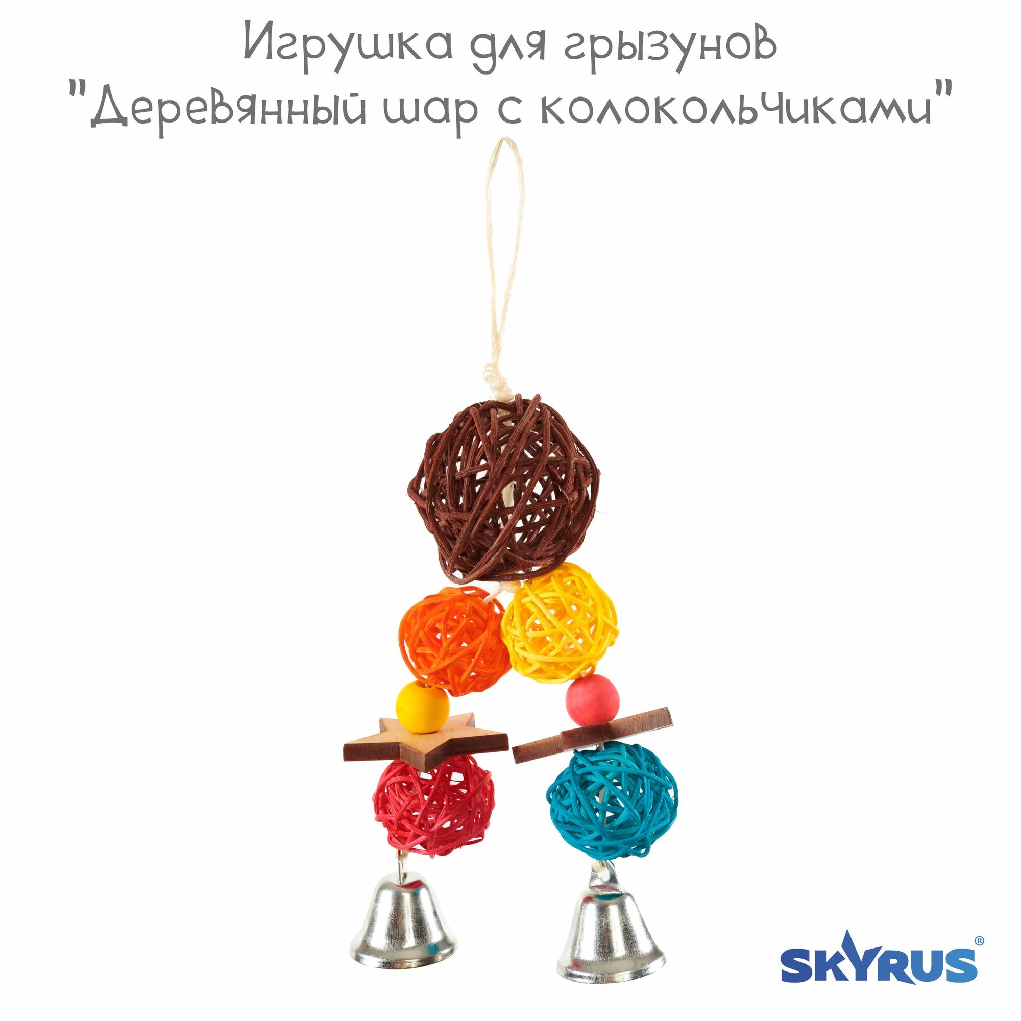 Игрушка для птиц SkyRus "Деревянный шар с колокольчиками", 9х5х24см информация: