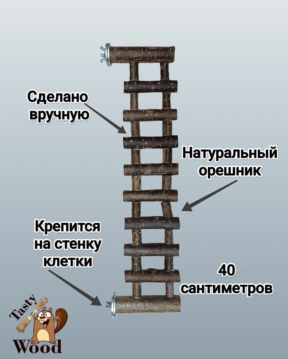 Настенная Лесенка для грызунов и птиц, 40см, Орешник. Tasty_Wood информация: