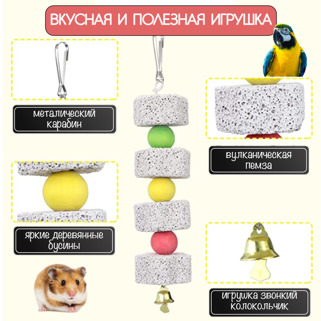 Отзывы на Камень для попугаев и грызунов, игрушка в клетку с колокольчиком, серый