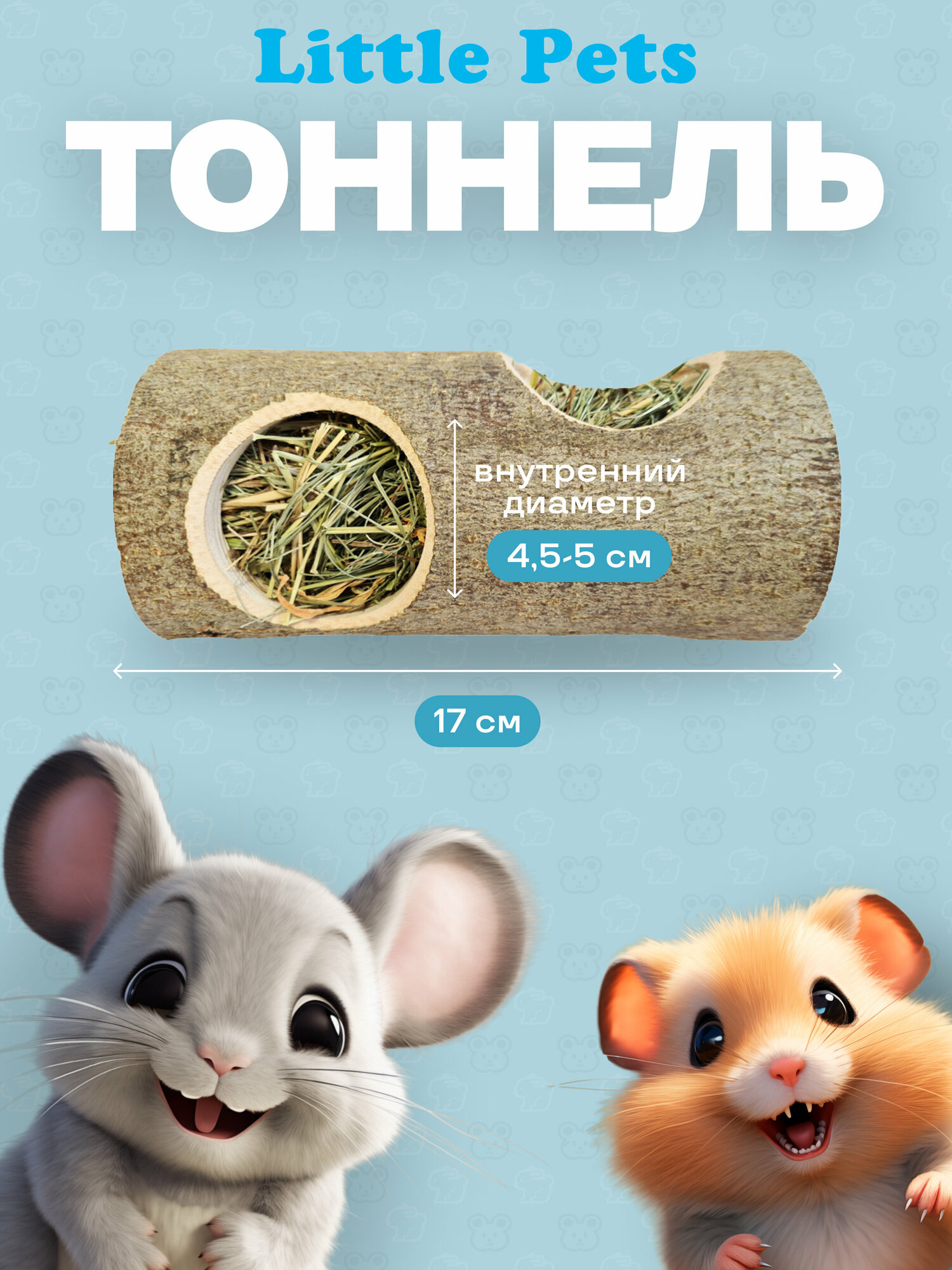 10 цен на Тоннель для мелких и средних грызунов "Little Pets" из массива лиственных пород, с сеном, L 17 см, внутр диаметр 50 мм