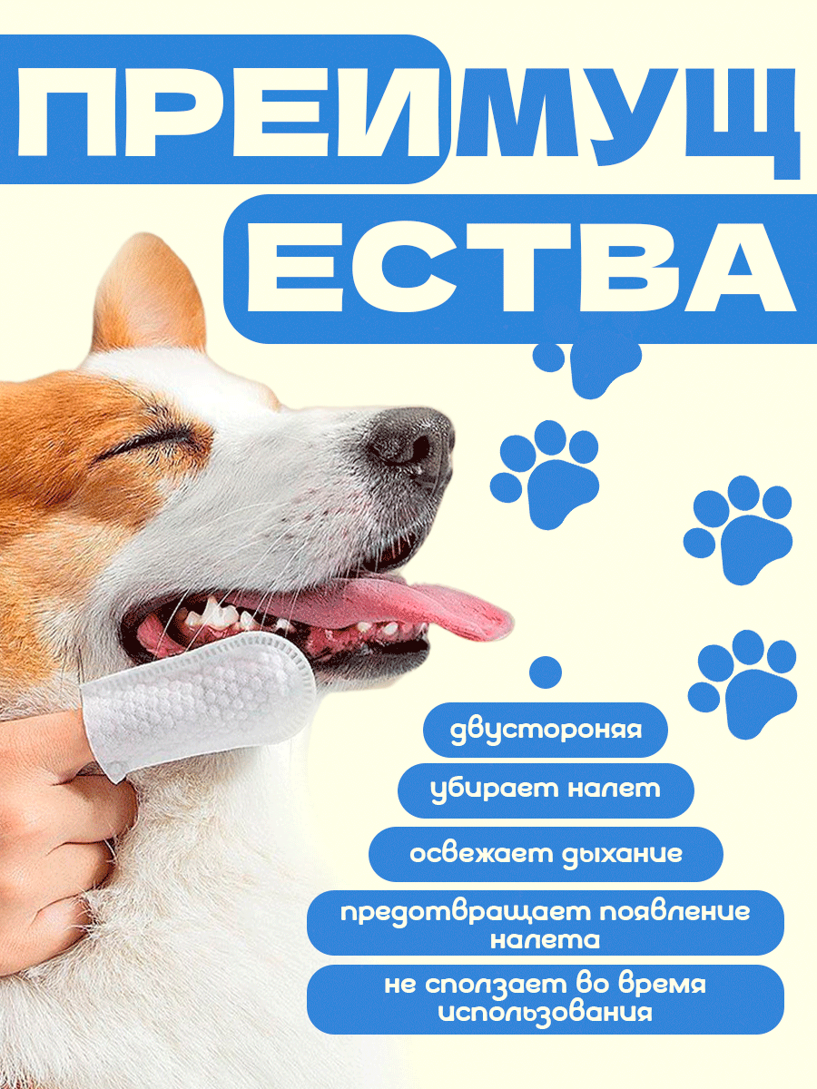 Отзывы на Напальчники для чистки зубов собак и кошек, влажные салфетки для животных, 50 штук